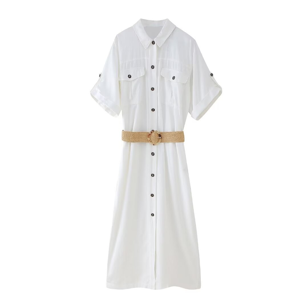 Yipinpay Lapel Dress Single-Breasted High-Waisted Thin Single-Breasted Dress