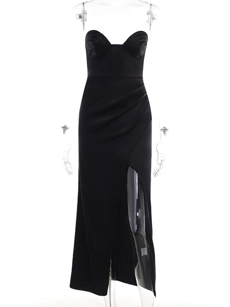 Yipinpay MO Elegant Hight Split Solid Off-shoulder Maxi Dress Sexy Party Club Women‘s Clothing Slim Ruched Backless Vestido