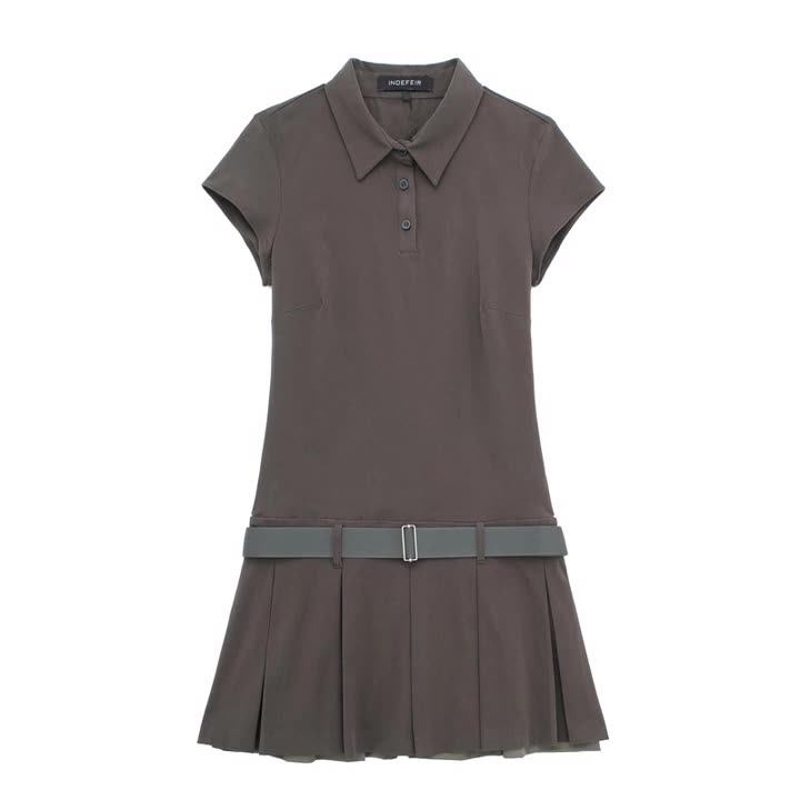 Yipinpay New POLO Collar With Belt Short-Sleeved Mini Dress 3152313