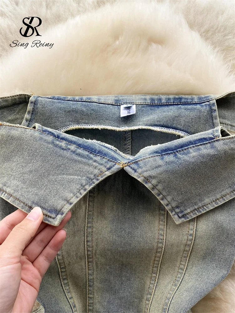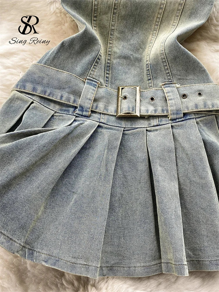 Yipinpay Off the Shoulder Sexy Denim Dress 2024 Strapless Sashes Patchwork Bodycon Dress Ladies Ins Streetwear Short Sundress