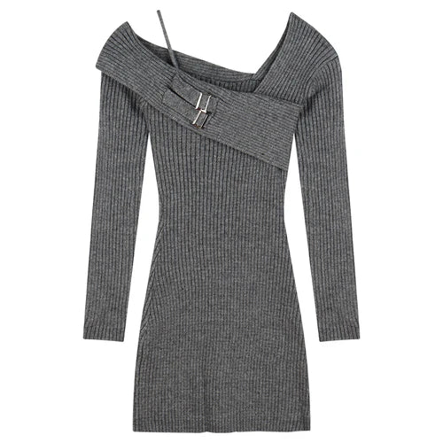 Yipinpay One Piece Dress Korean Fashion 2024 Winter Sexy Bodycon Y2k Mini Dress Woman Long Sleeve Solid Knitted Dress Slim Casual