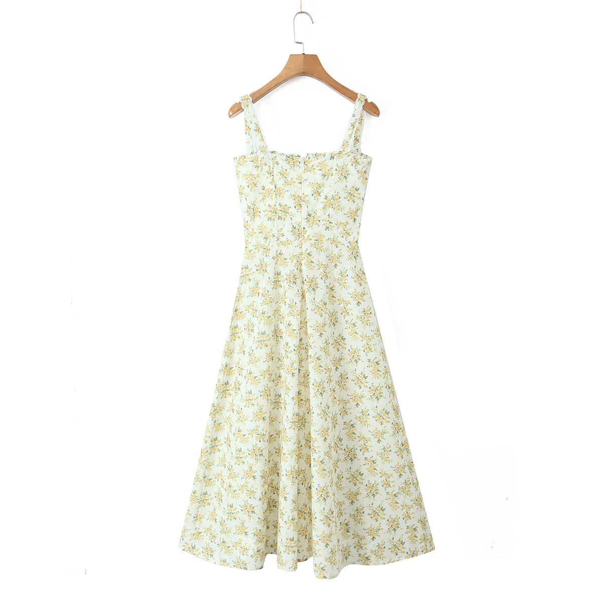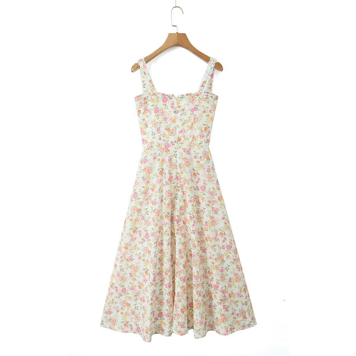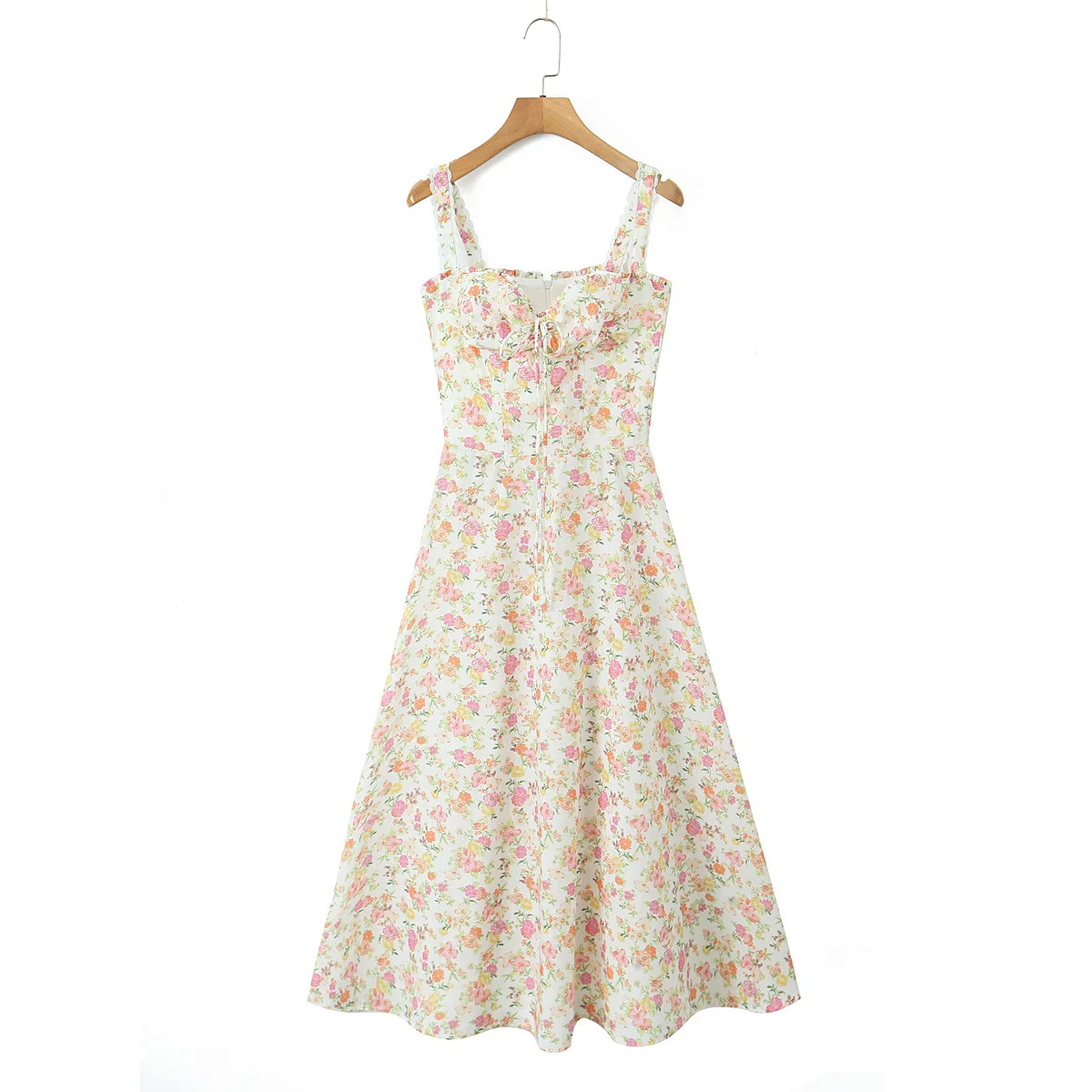 Yipinpay Sexy Elegant Women Lace Patchwork Floral Print Sling Midi Dresses Holiday Summer Lady Party Vestidos Cotton Robe
