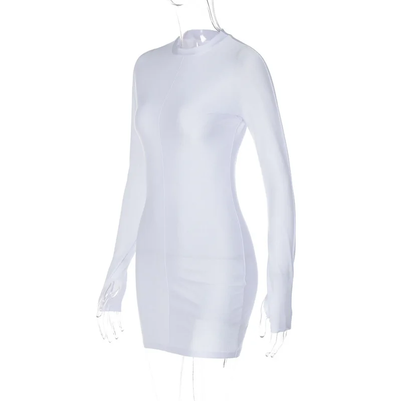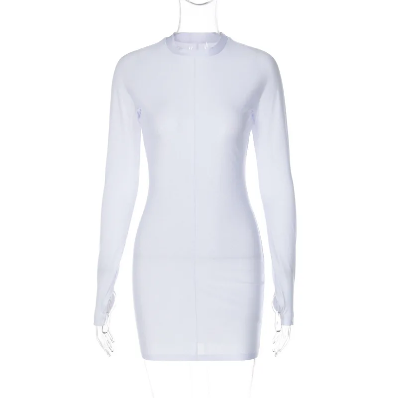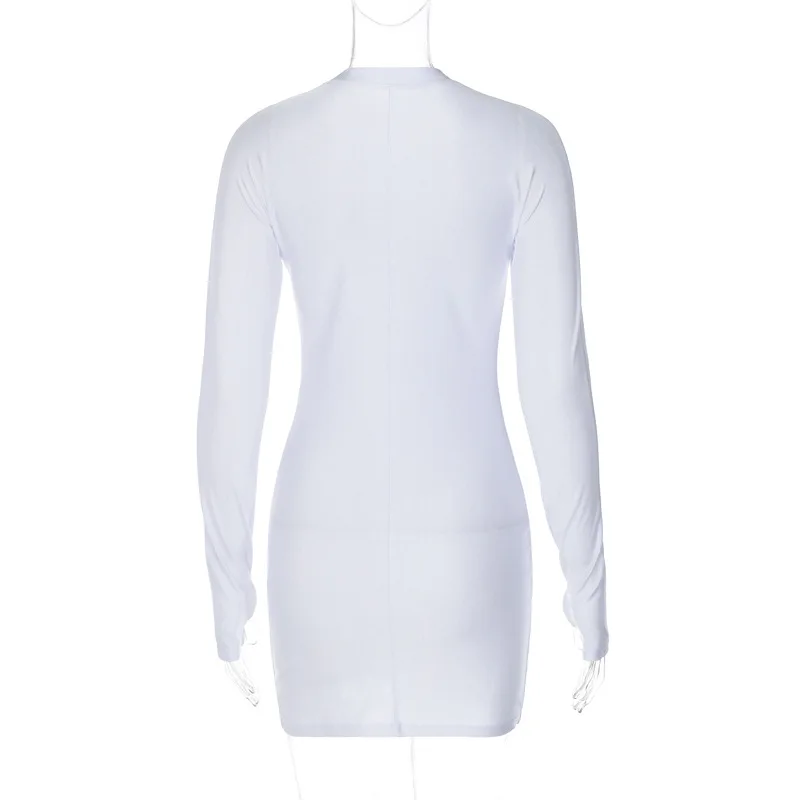 Yipinpay Simenual Fairy Grunge White Finger Cuff Mini Dress Women Elegant Fashion Fall Outfits Sexy Party Bodycon Dresses Slim Birthday