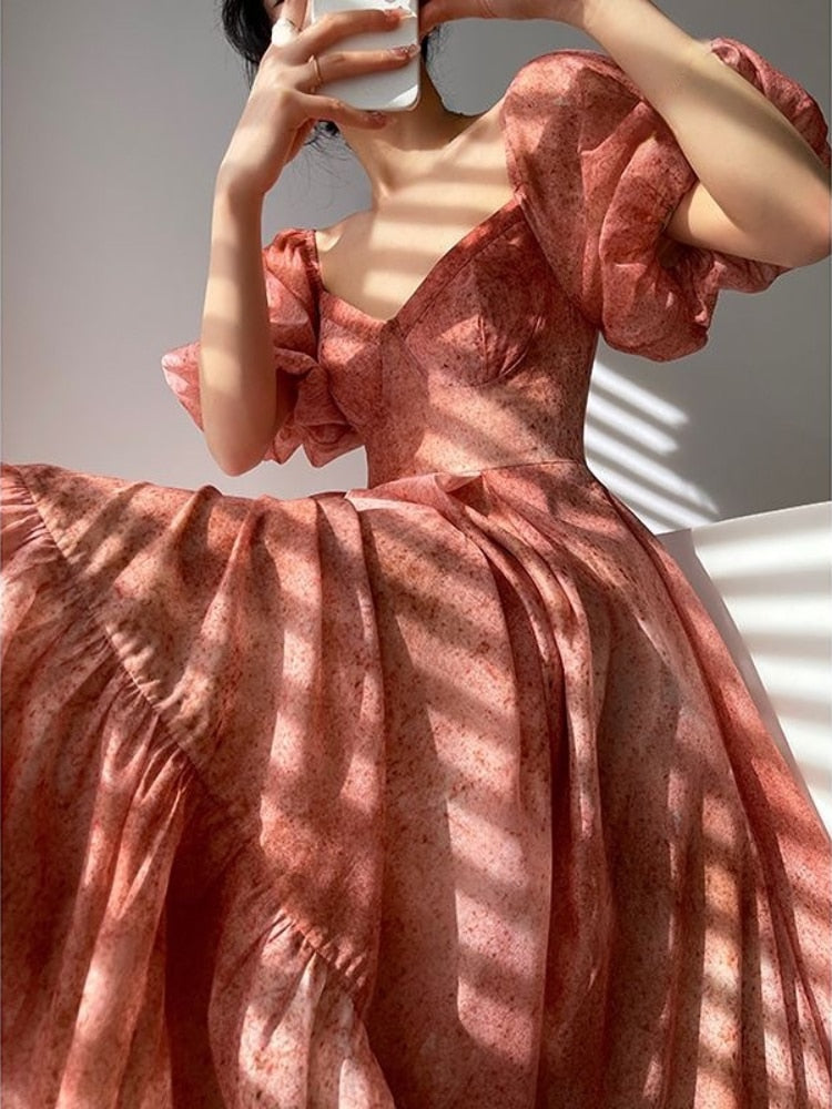 Yipinpay Sleeve French Elegant Dress Woman Beach Chiffon Fashion Midi Dress Office Lady Retro Even Party Dress Casual 2023 Summer