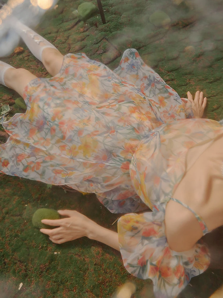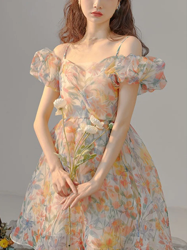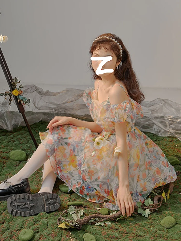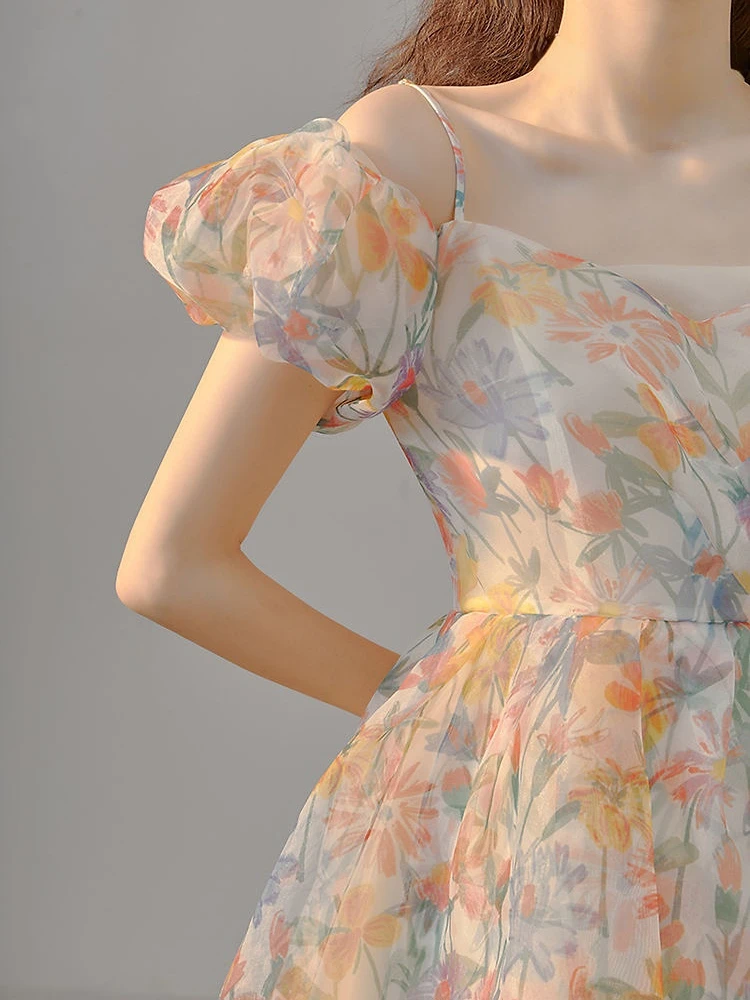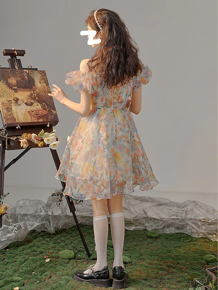 Yipinpay Sleeve One Piece Dress Korean Style Casual 2023 Summer Fairy Elegnat Floral Mini Dress Beach Sweet Short Sleeve Dress Woman
