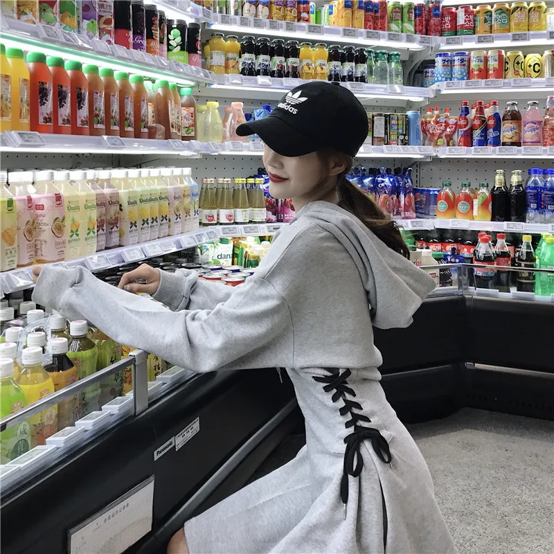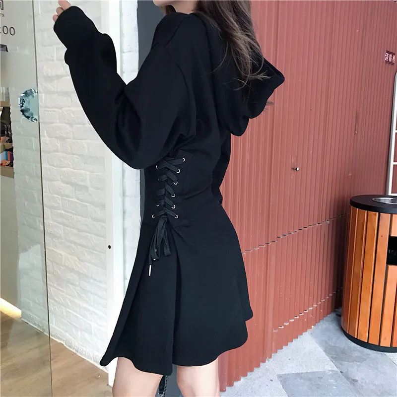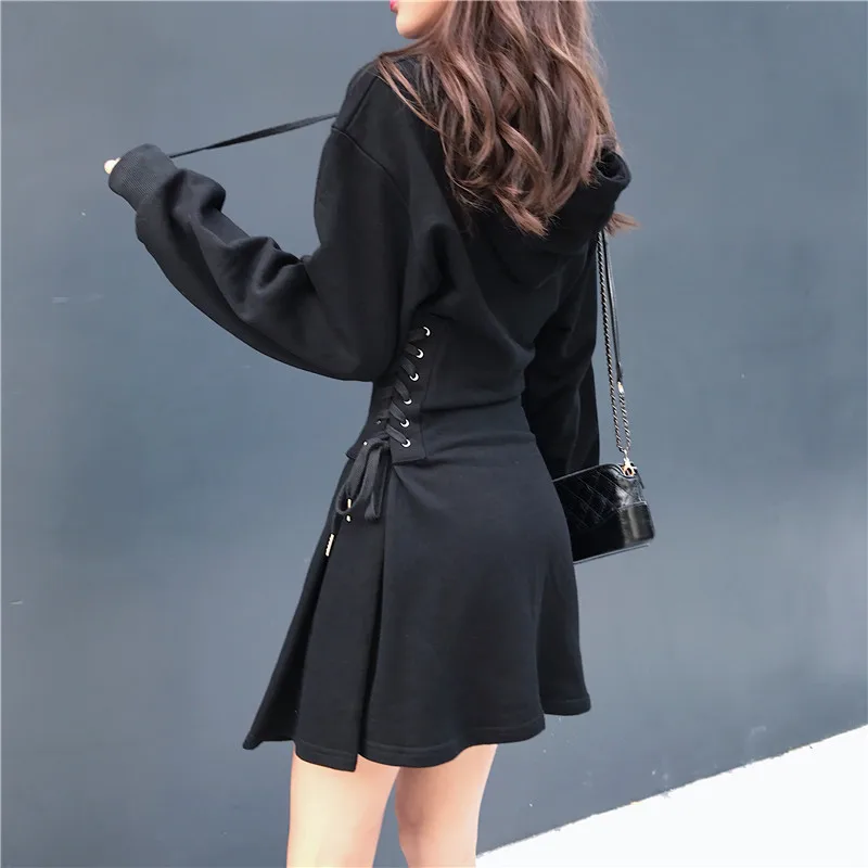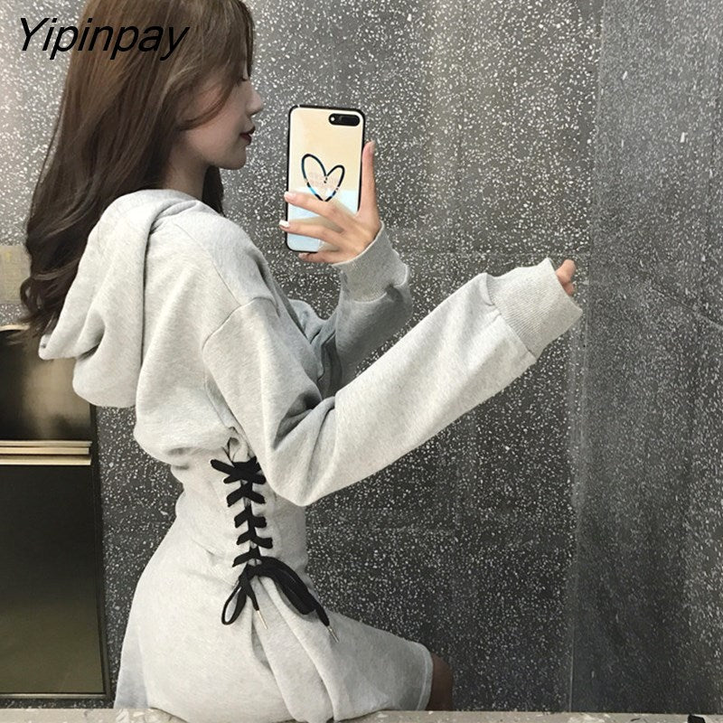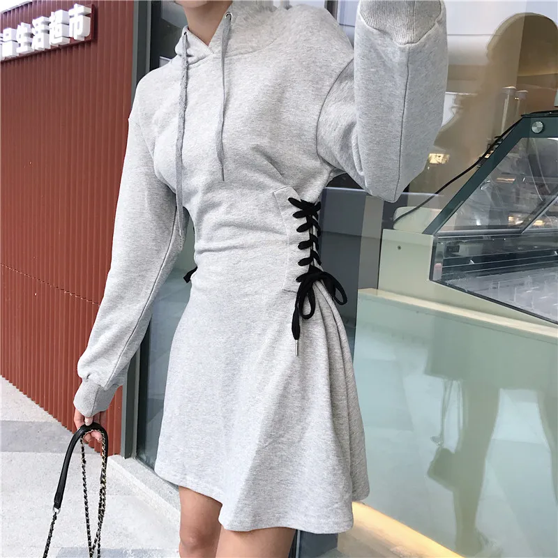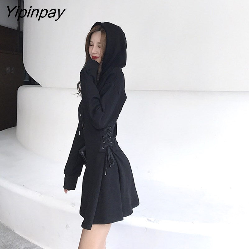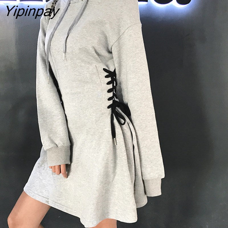 Yipinpay Spring Autumn Women dress Korean style slim high waist Hooded streetwear Corset Lace up Sports dress female dresses