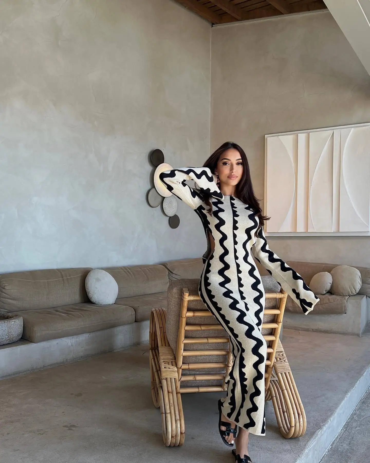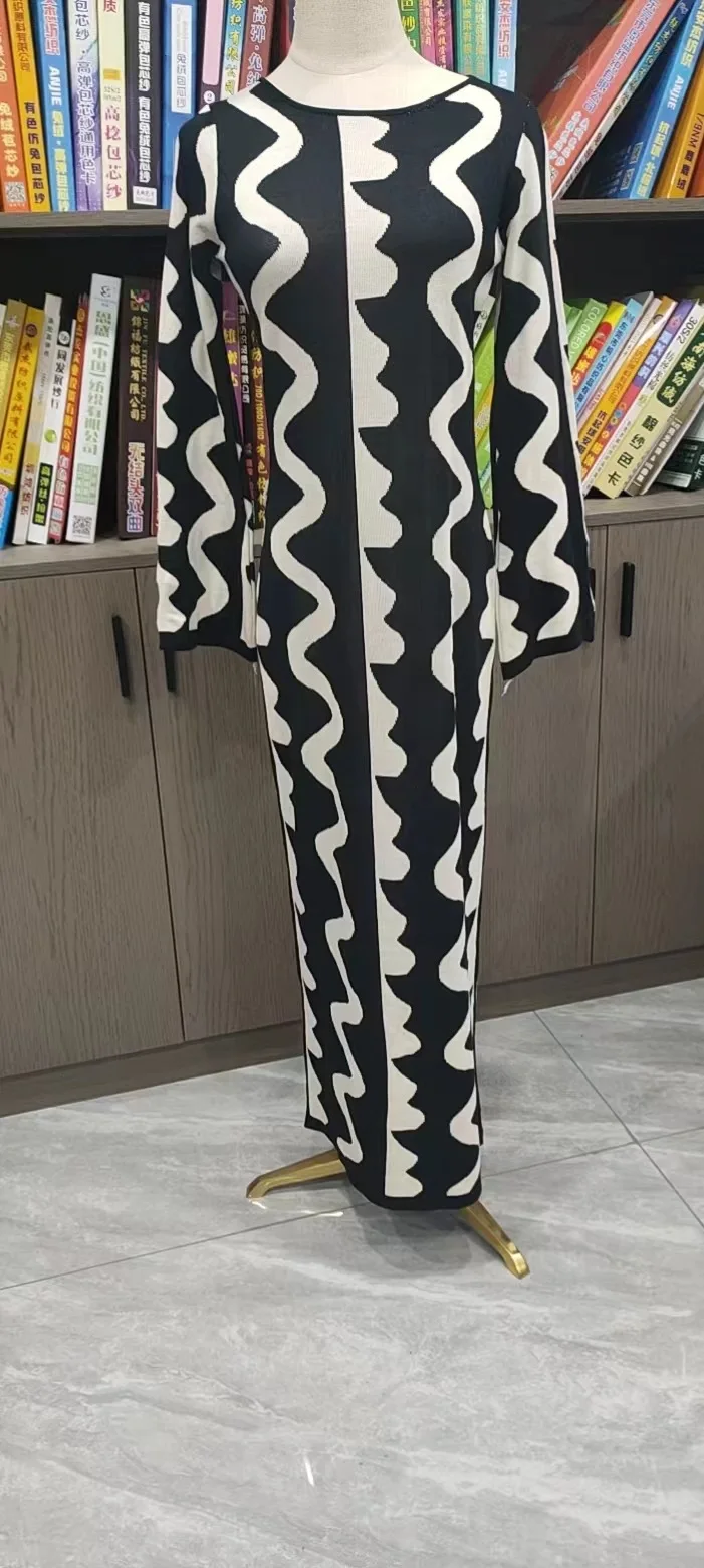 Yipinpay Striped Contrast Color Knit Maxi Bodycon Dress Boho High Waisted Hollow Out Slim Dresses Women Holiday Dresses Vestidos