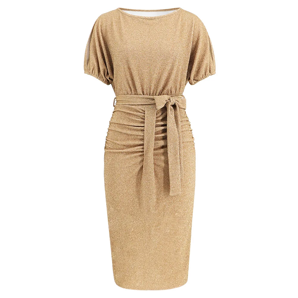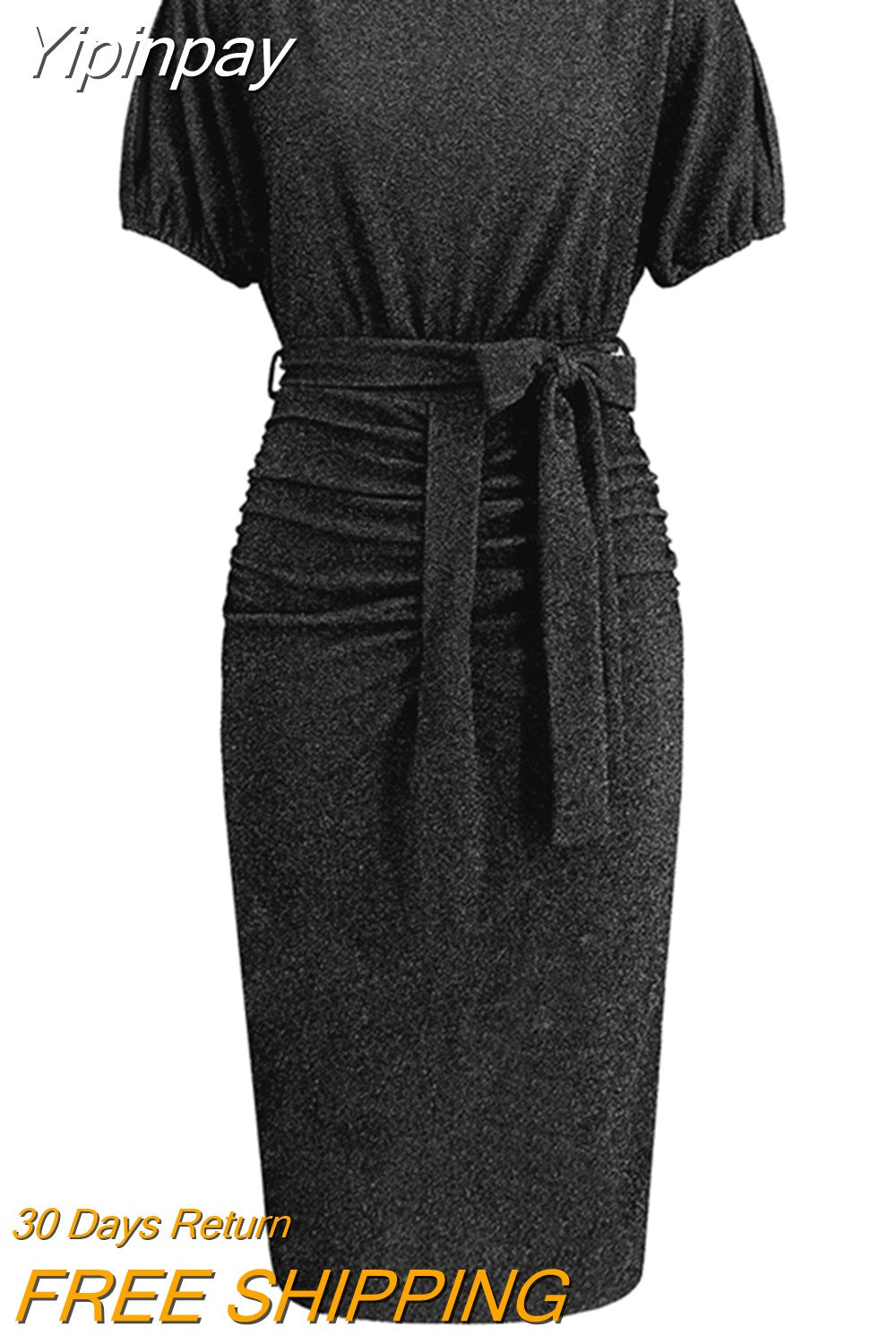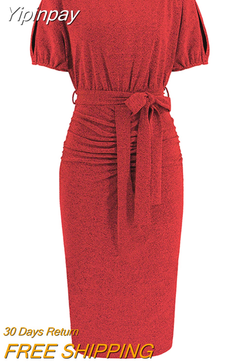 Yipinpay Summer Bat Short-sleeved Dress Slim Sexy Temperament Slimming Bag Hip OL Dress Dress Female