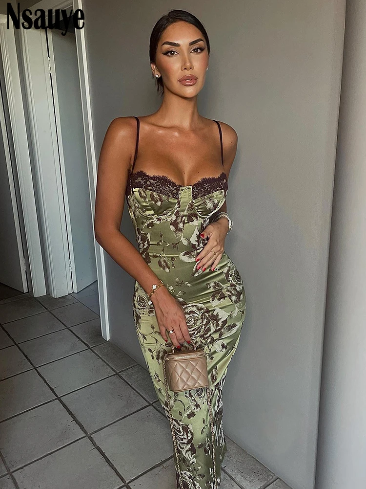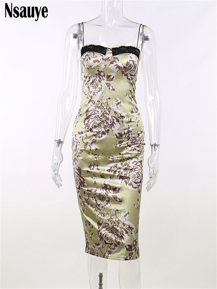 yipinpay Summer Casual Flower Print Lace Sexy Bodycon Club Midi Dress Women 2023 Evening Party Fashion Wrap Elegant Strap Dress