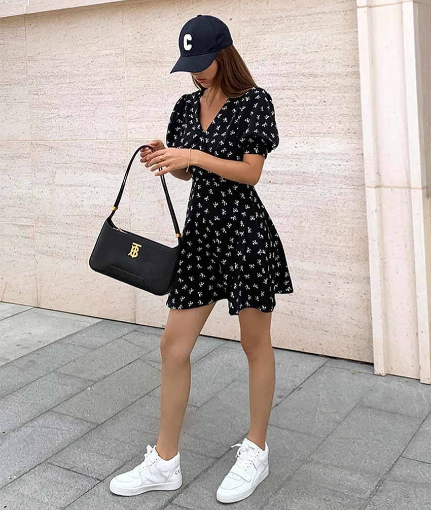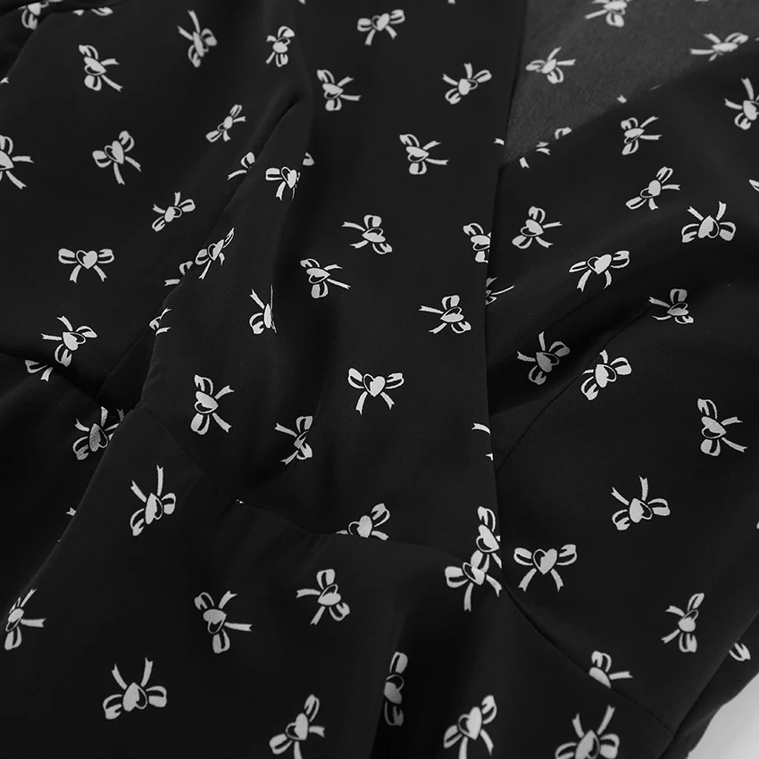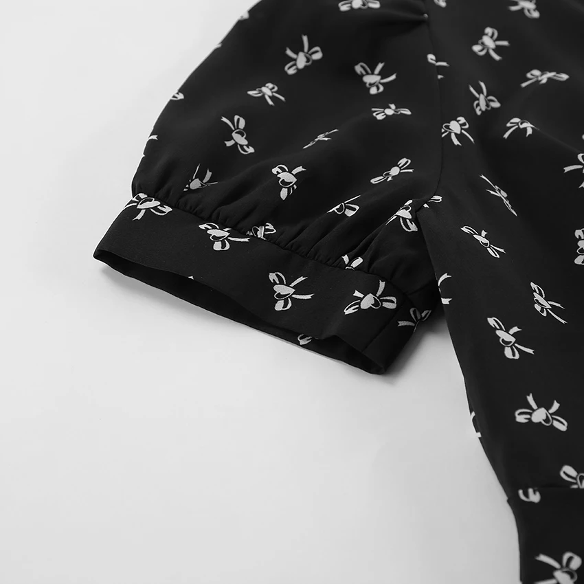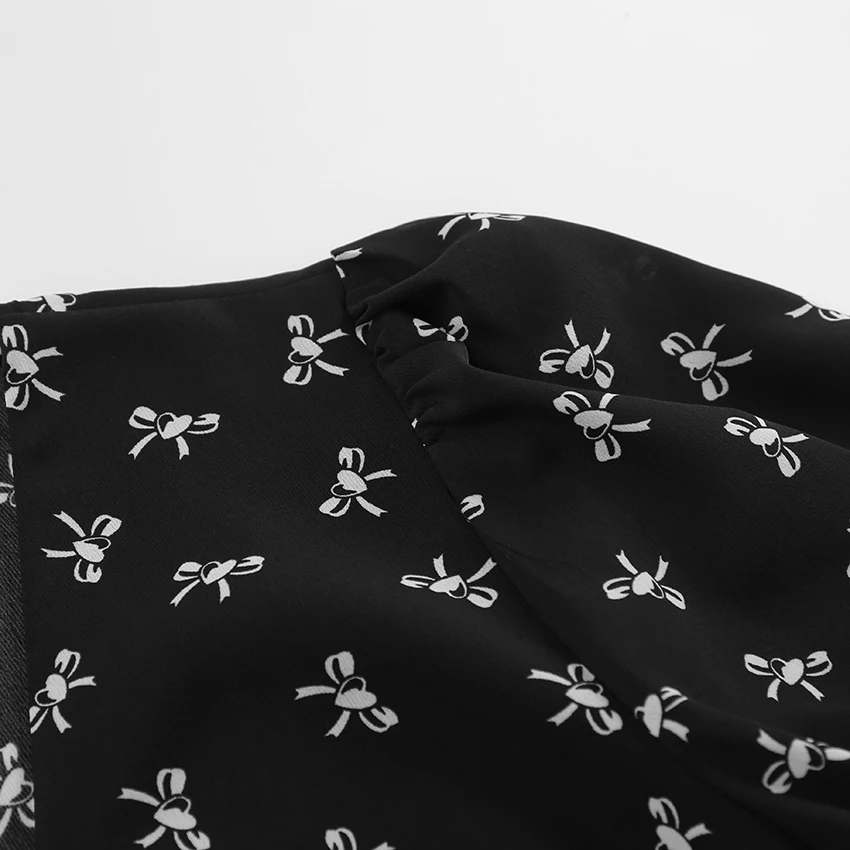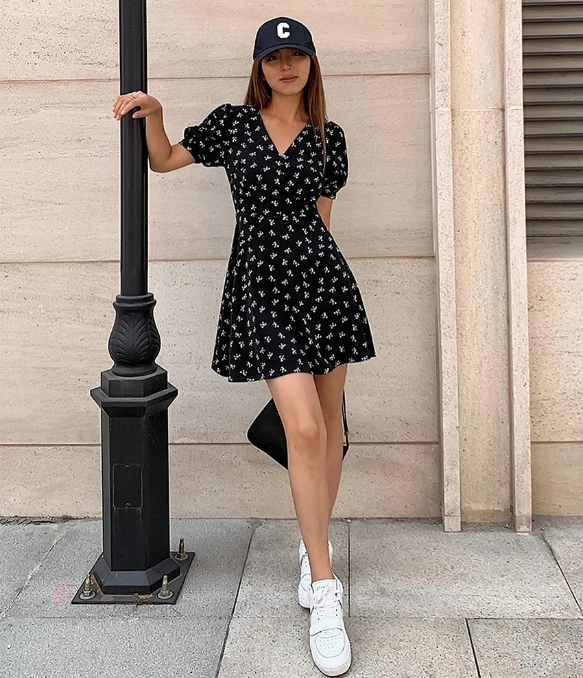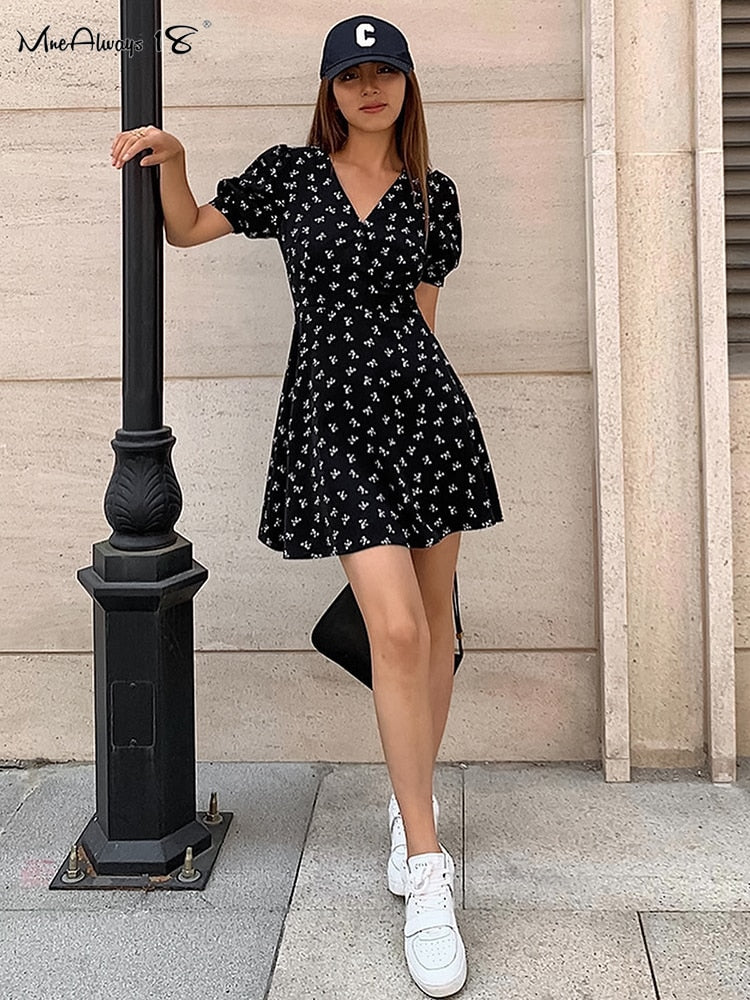 Yipinpay Summer Elegant V-Neck High Waist Print Dress Women Puff Sleeve Split Mini Dress Casual Office Lady Split Dress 2023