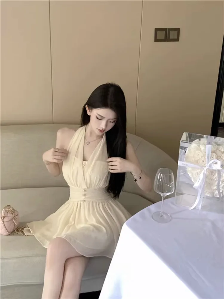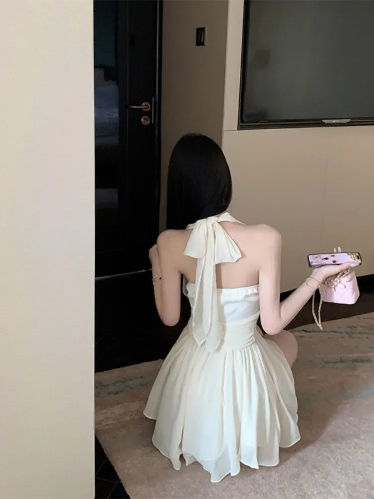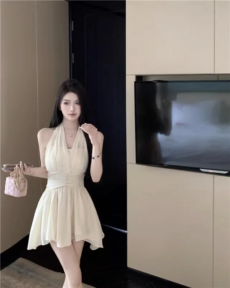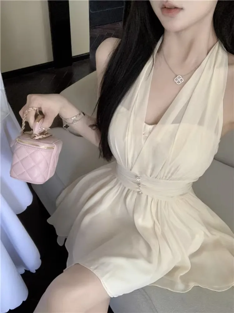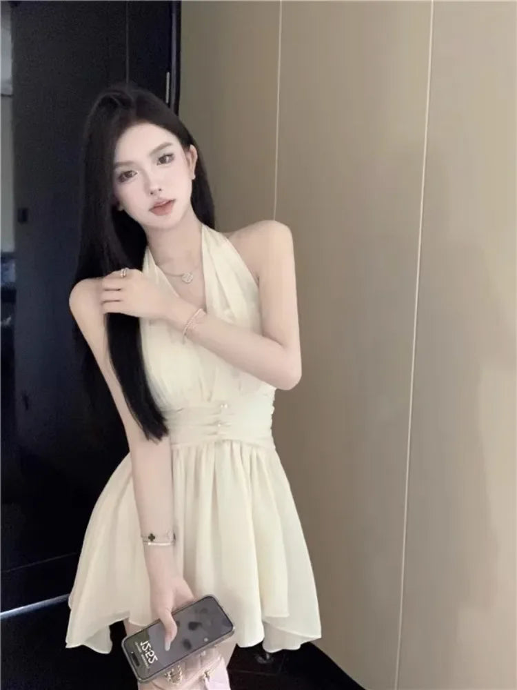 Yipinpay Sweet Elegant Mini Dresses Women Sleeveless Off Shoulder V Neck Slim Patchwork Backless Sexy Mini Dress Ladies Party