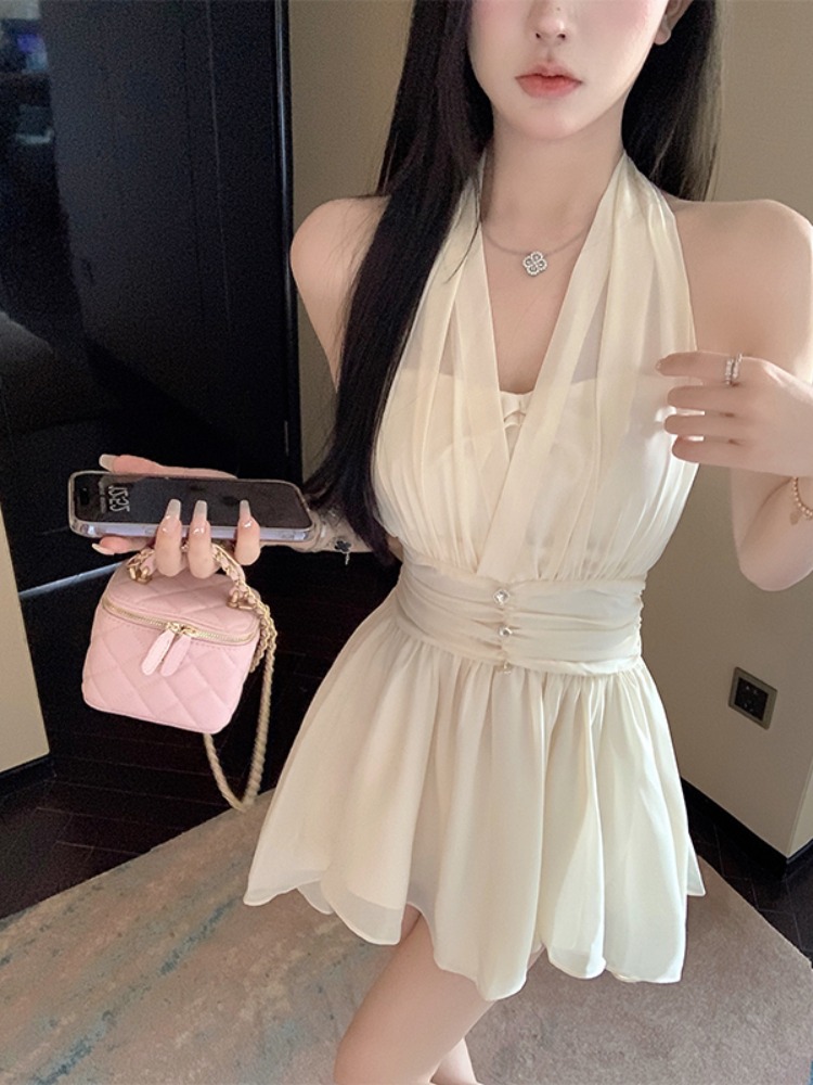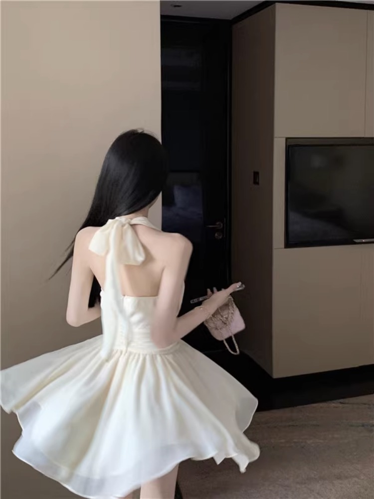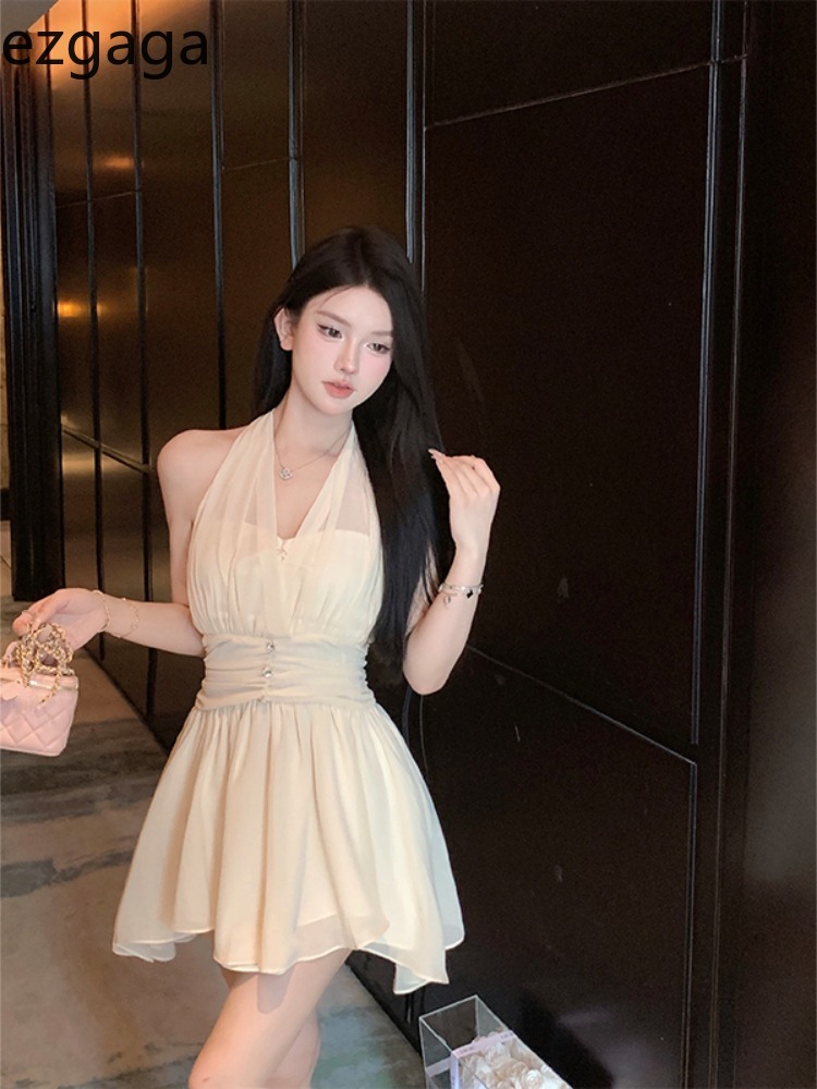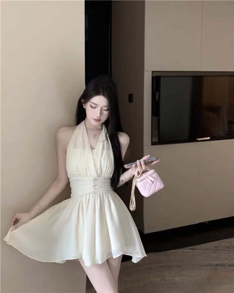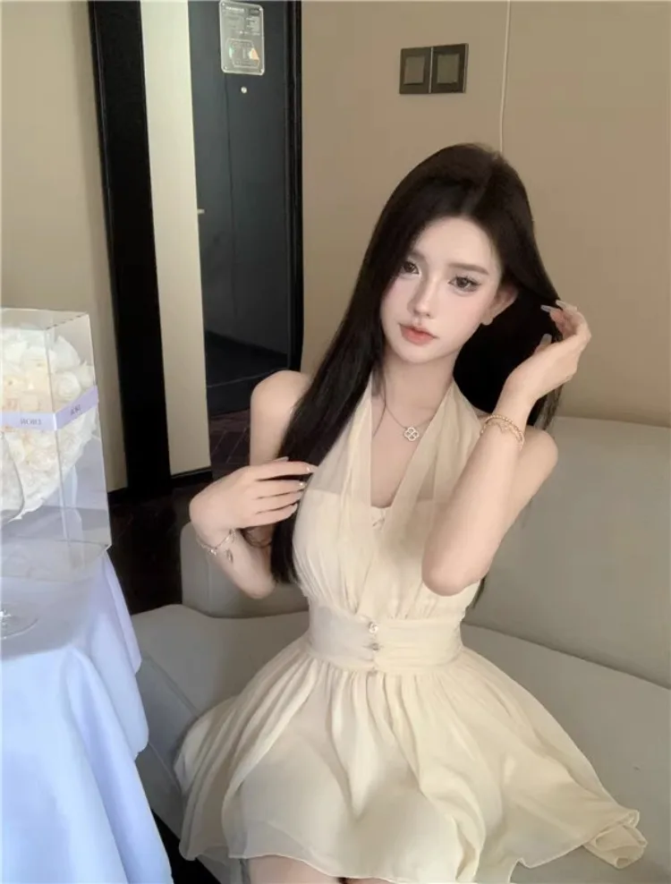 Yipinpay Sweet Elegant Mini Dresses Women Sleeveless Off Shoulder V Neck Slim Patchwork Backless Sexy Mini Dress Ladies Party