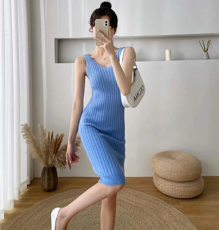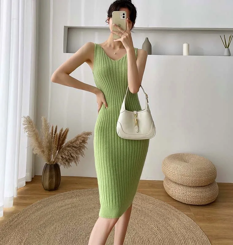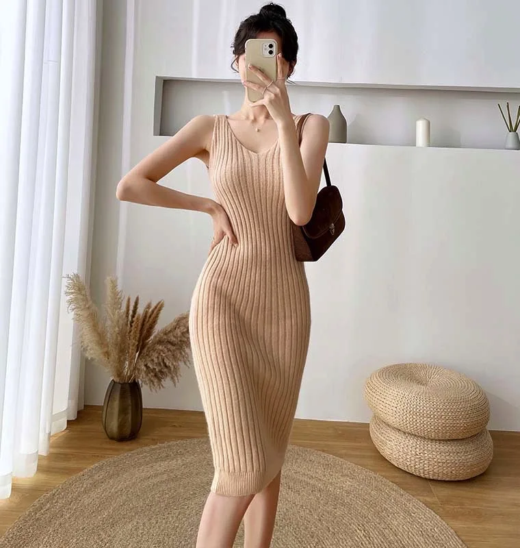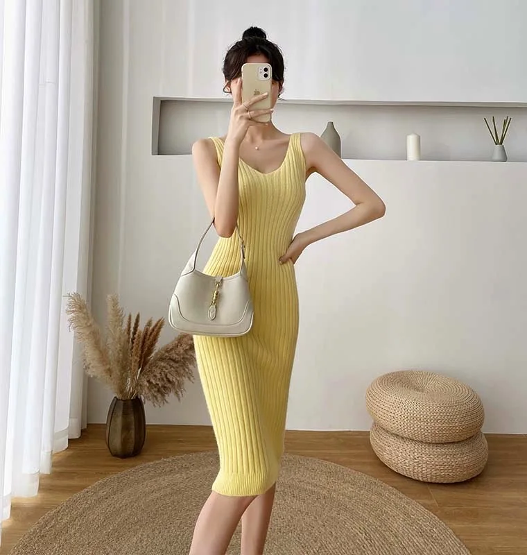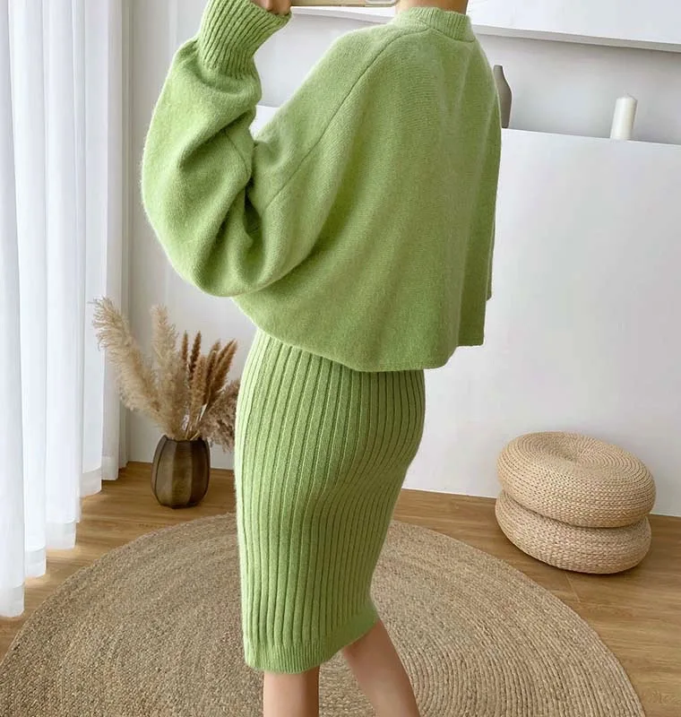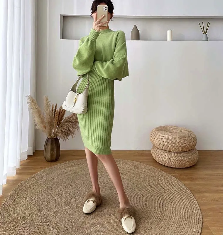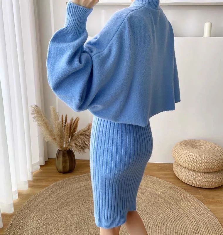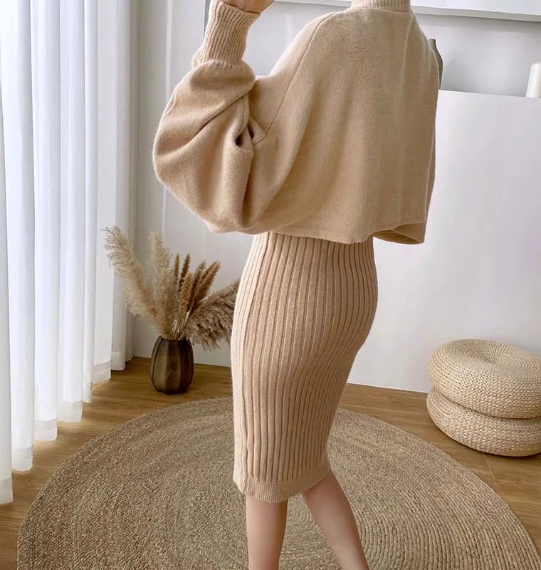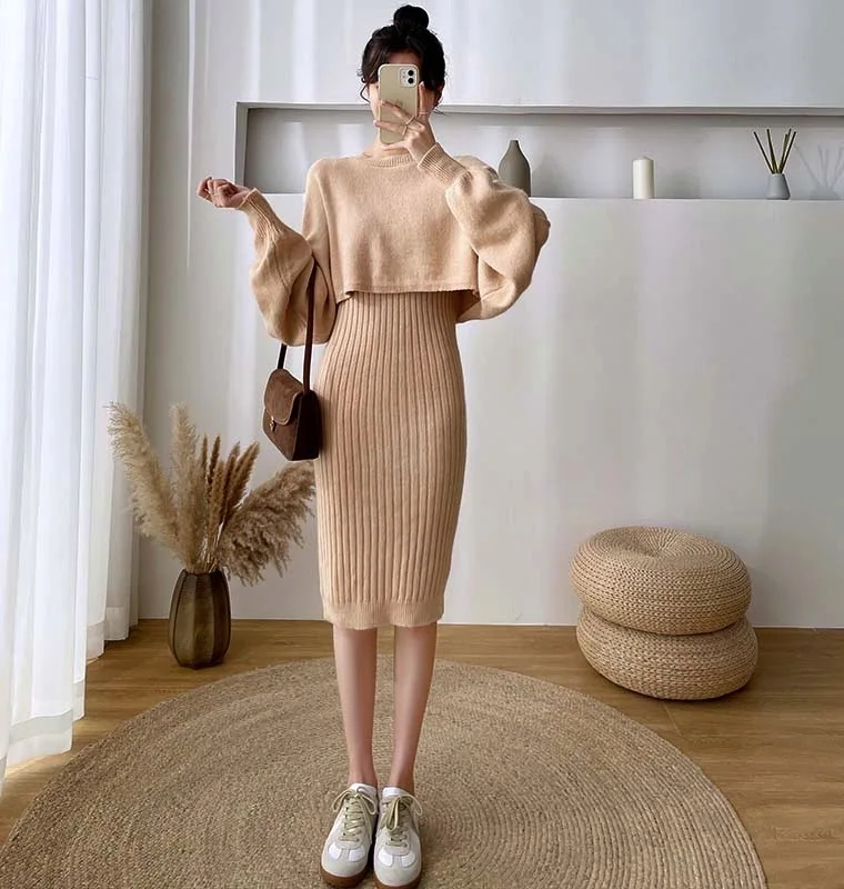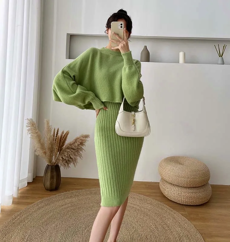 Yipinpay Winter Sweater Dress Two Piece Women Fashion New Office Ladies Sets Knitted Pullover Sweater + Vest Dress
