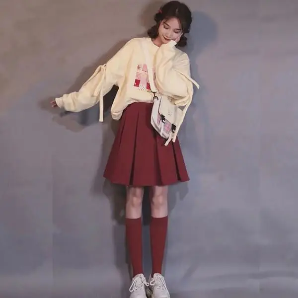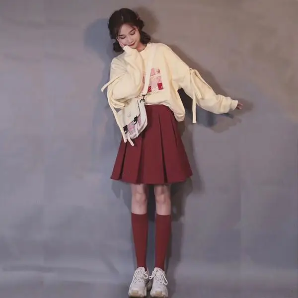 Yipinpay Winter Two Pieces Sets Women Japanese Loose Hoodies+Plaid Skirt Preppy Style Dress Set Female