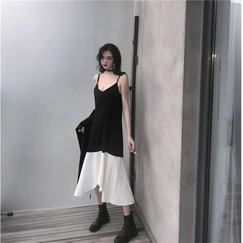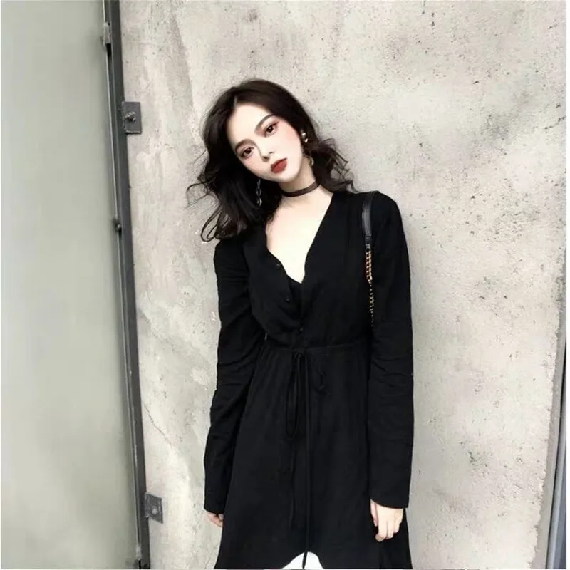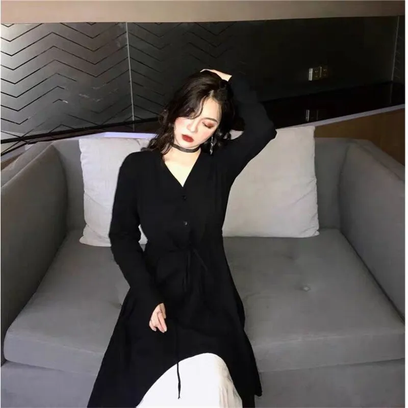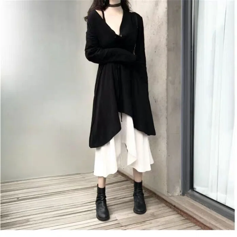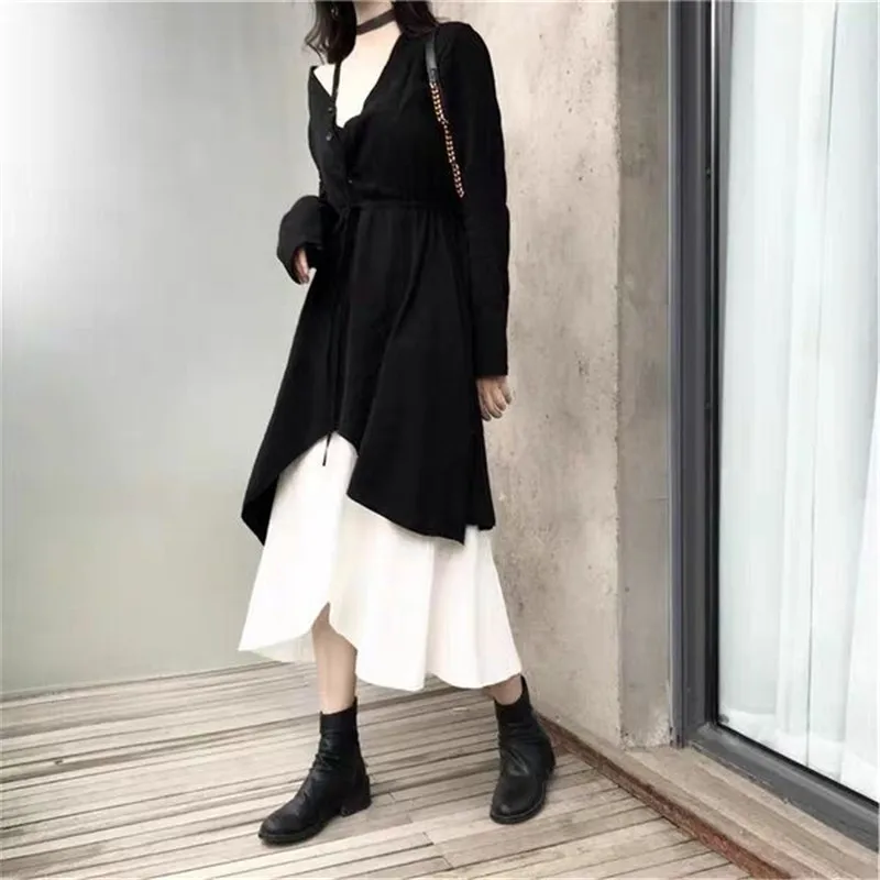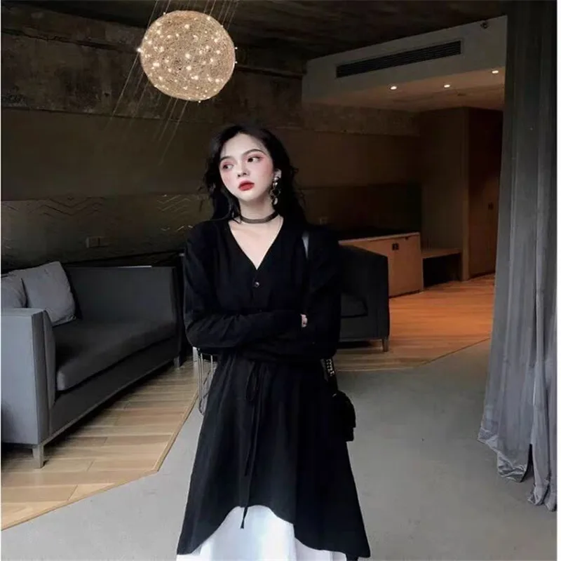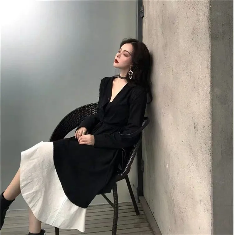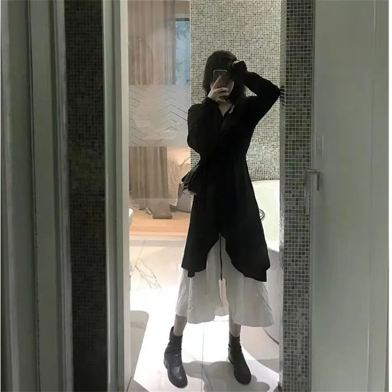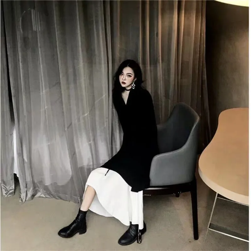 Yipinpay Women dress Oversize Two piece set Korean style Fashion Long female bing Patchwork Long sleeve Black dress 2023 HOT