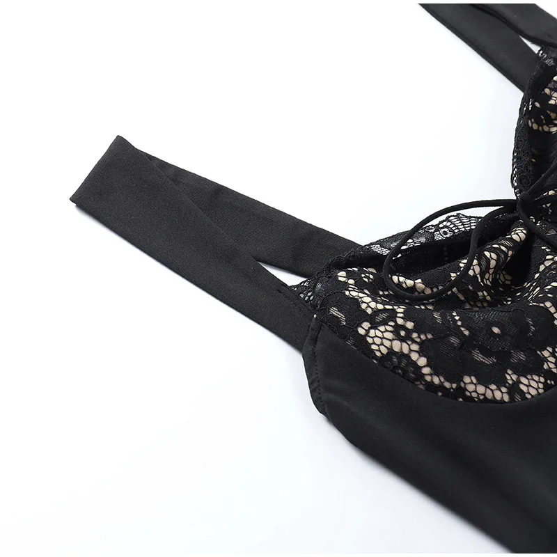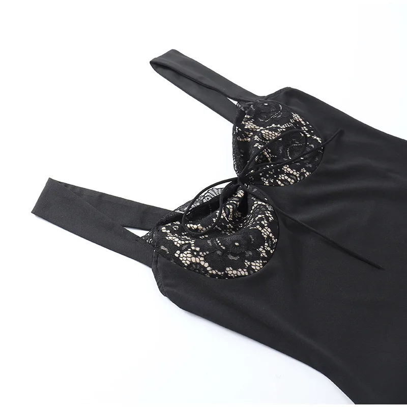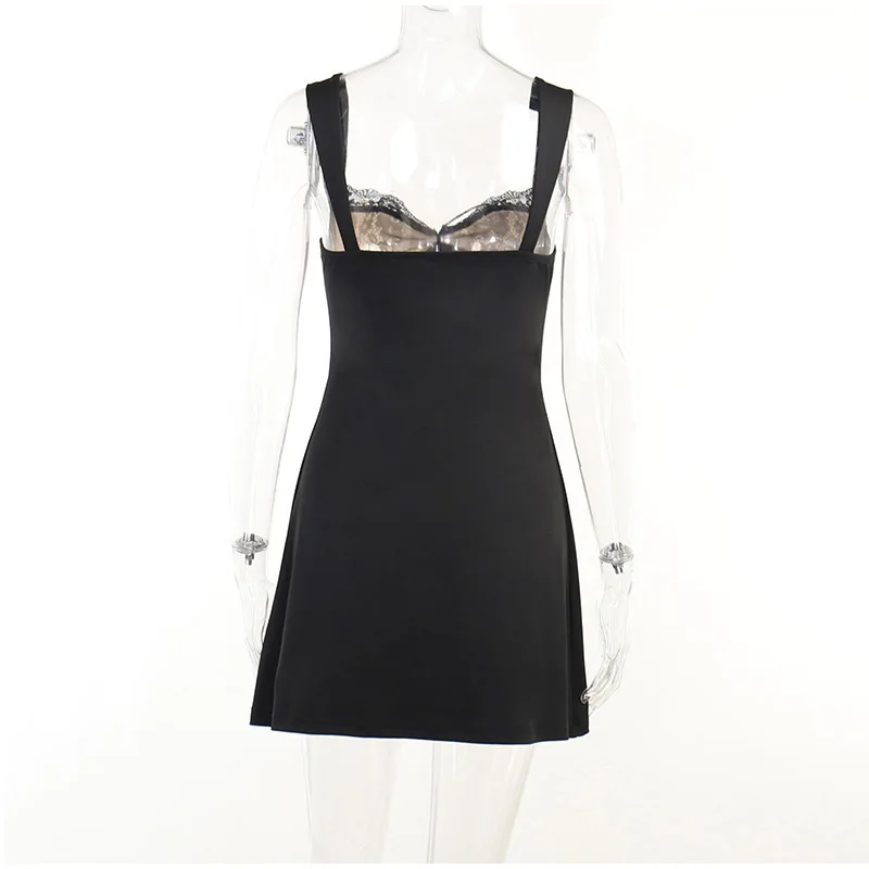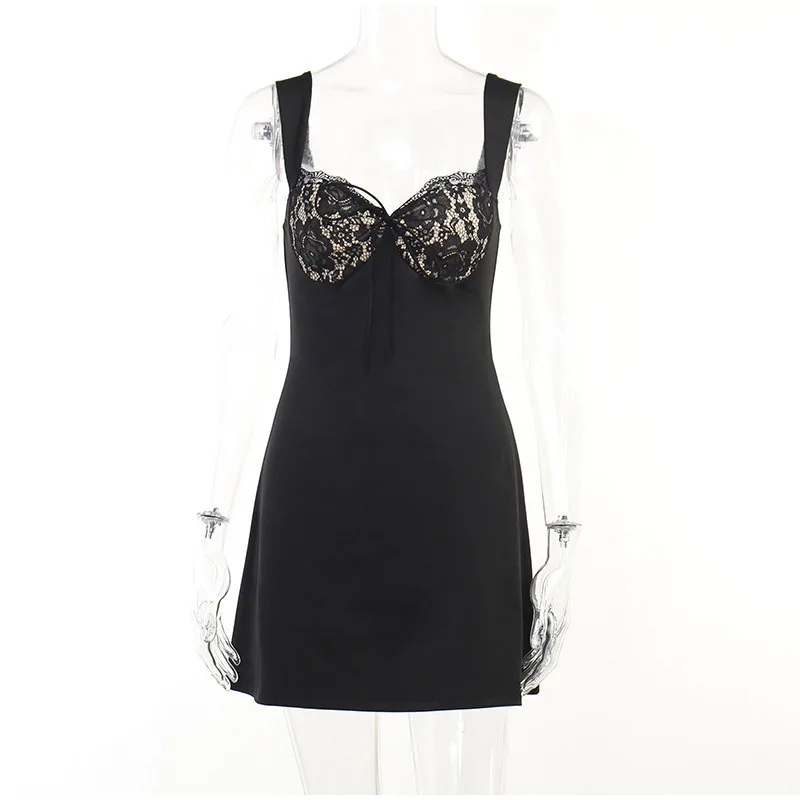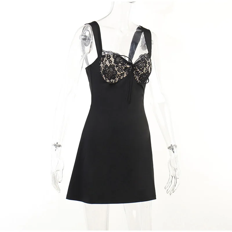 Yipinpay Women Lace Splicing Spaghetti Strap Dress Sexy Elegant Backless Strapless Solid Mini A-line Dresses 2023 Summer Club Party Robe
