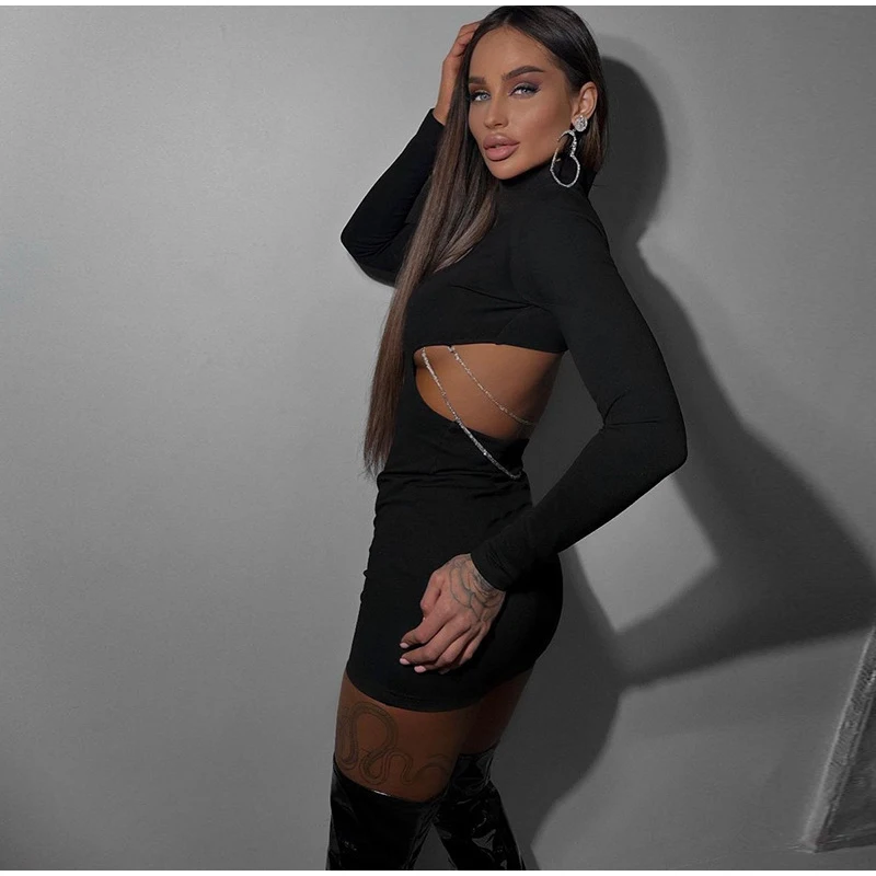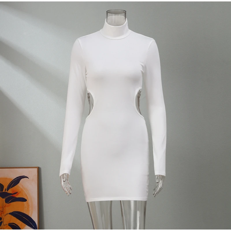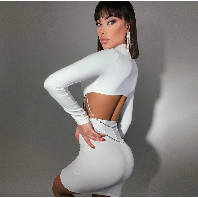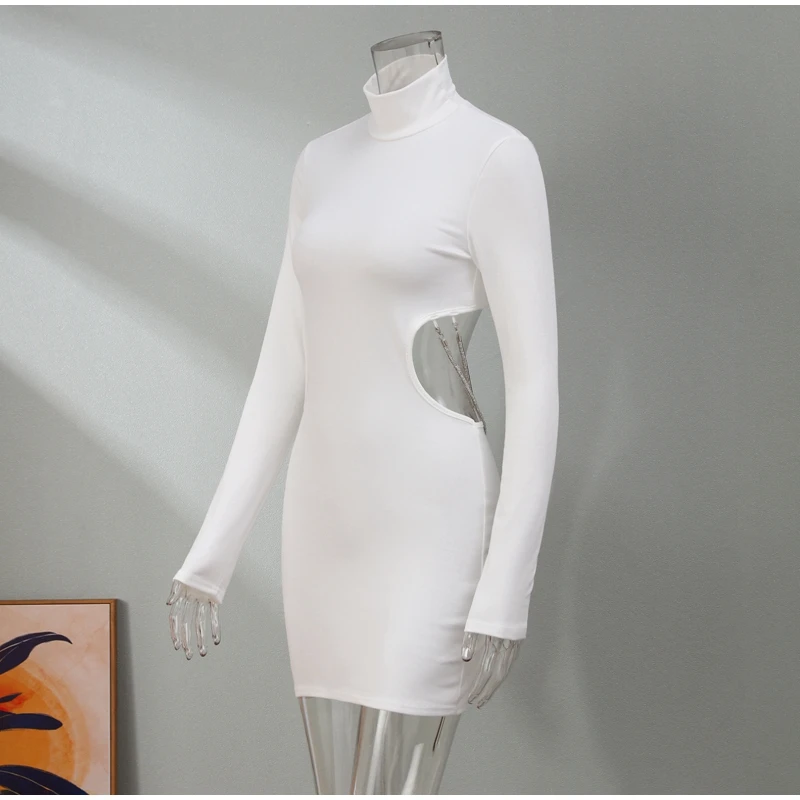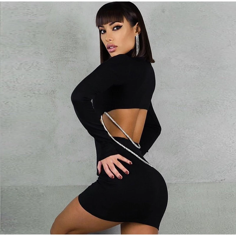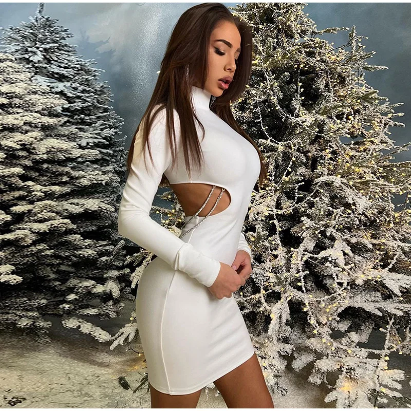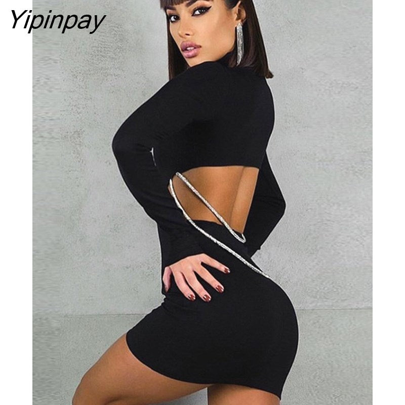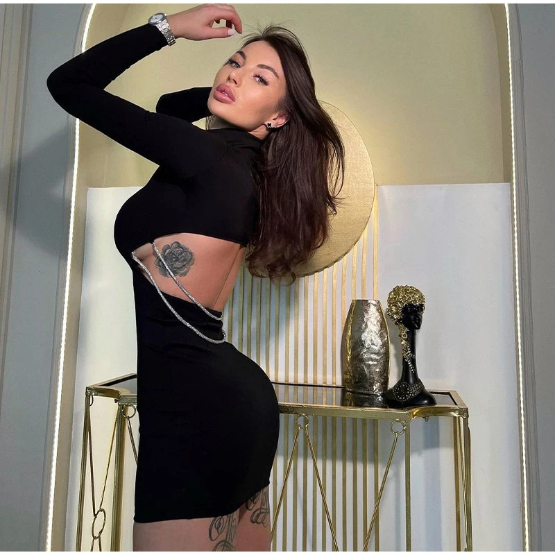 Yipinpay Women Long Sleeve Bodycon Hollow Out Mini Dress Solid Sexy Backless Slim High Neck Dress 2023 Autumn Party Club Christmas Dress
