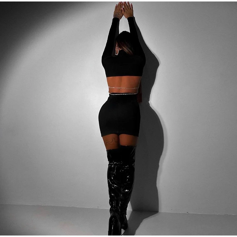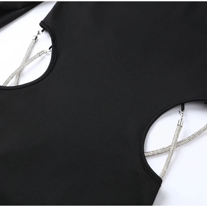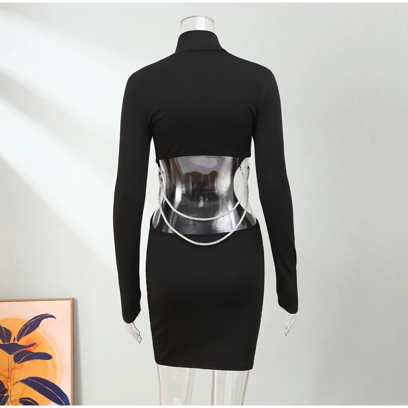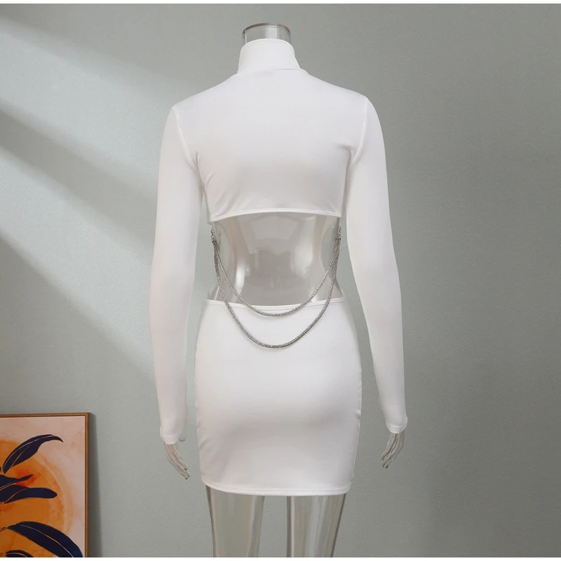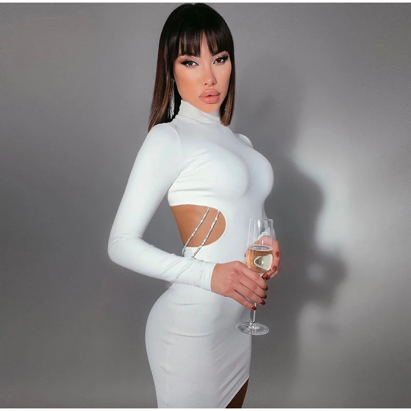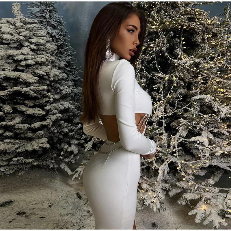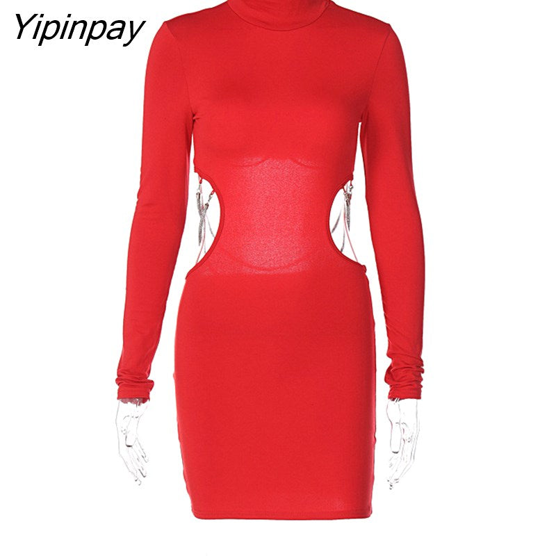 Yipinpay Women Long Sleeve Bodycon Hollow Out Mini Dress Solid Sexy Backless Slim High Neck Dress 2023 Autumn Party Club Christmas Dress