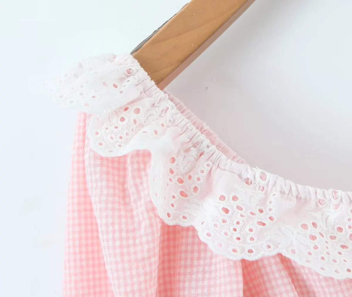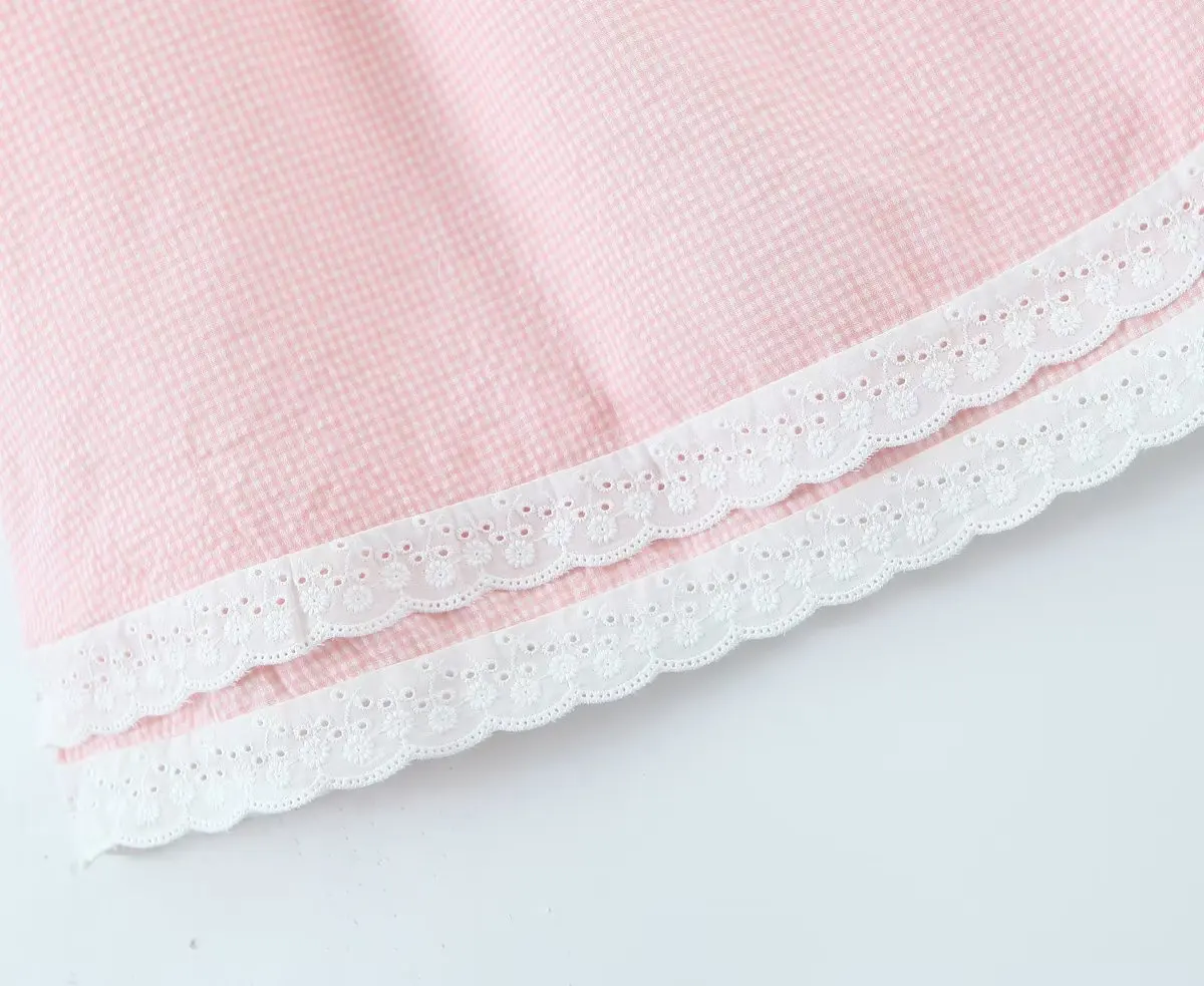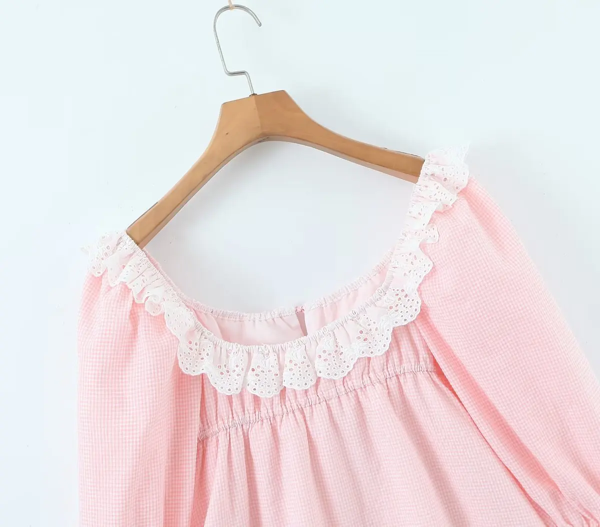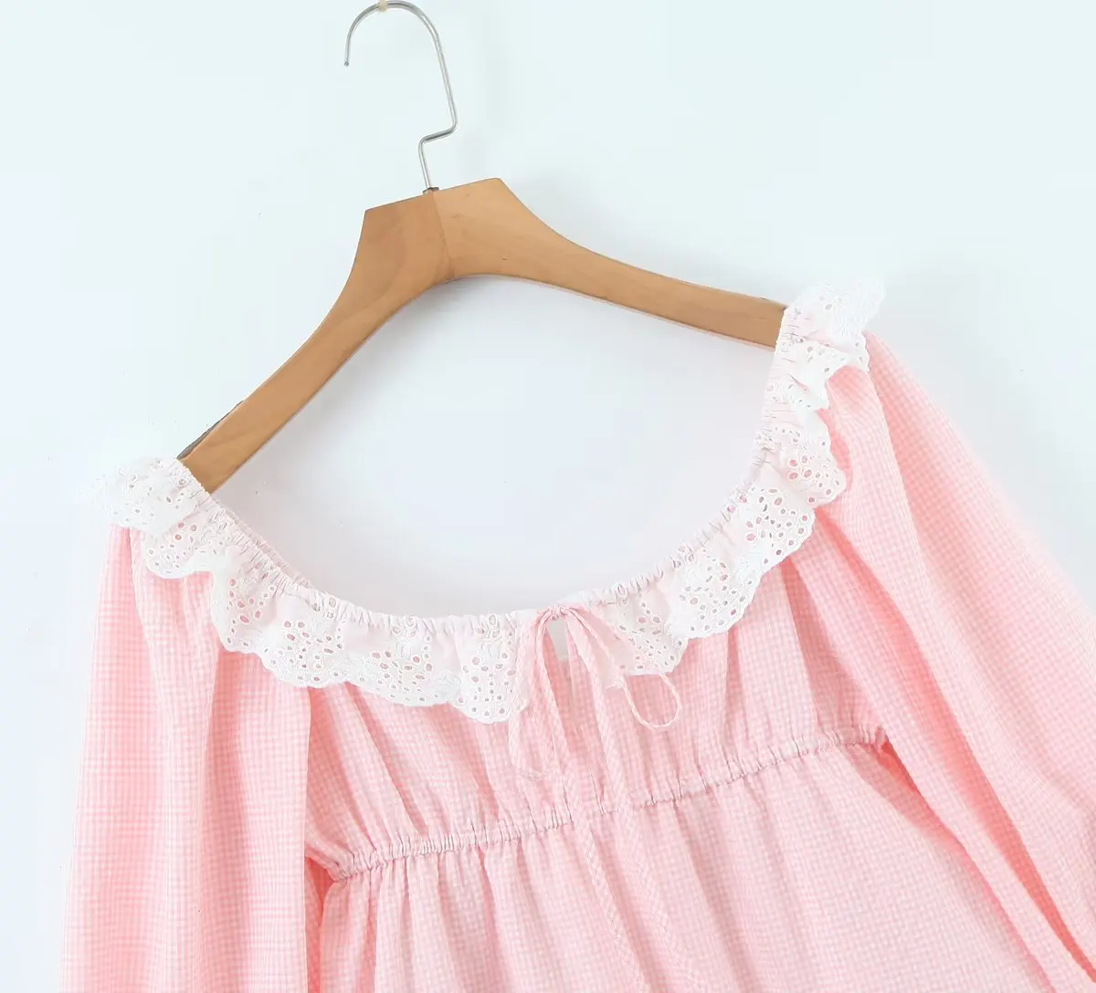 Yipinpay Women Sweet Lace Trim Plaid Dress Vintage Lantern Sleeve Sexy Collar Female Casual Holiday Mini Dress