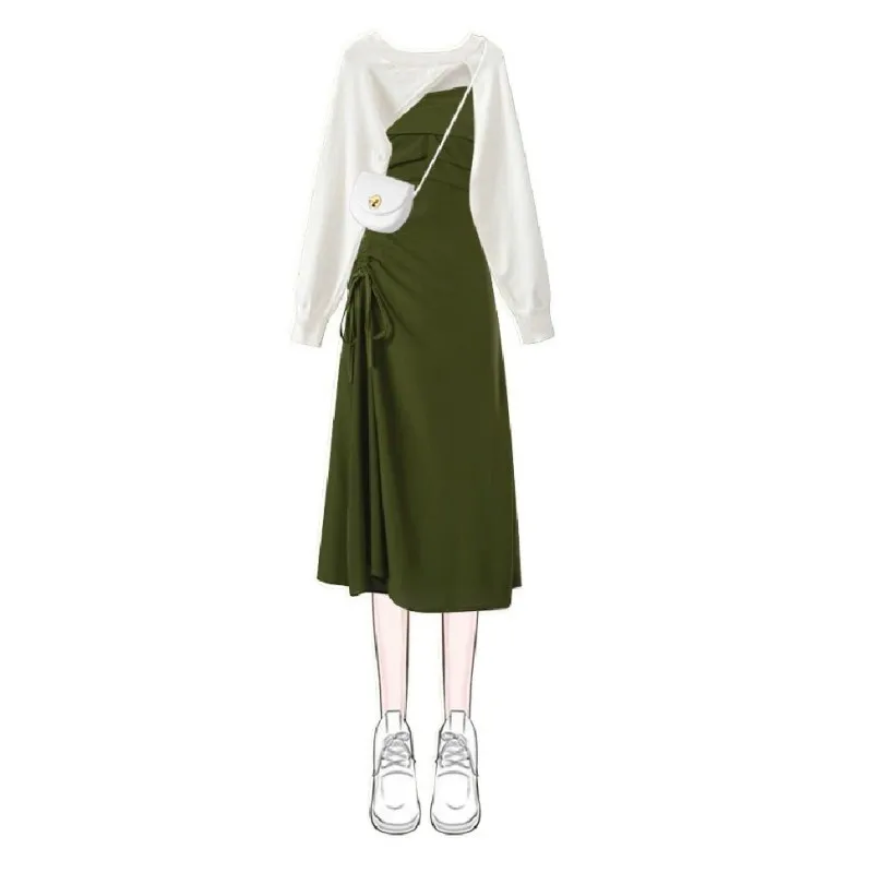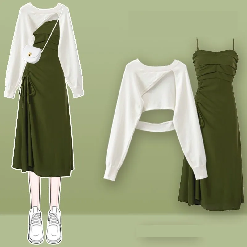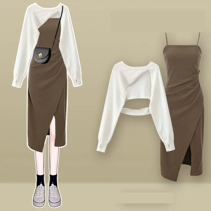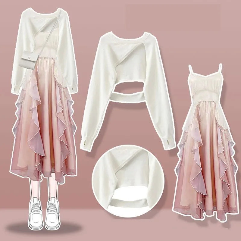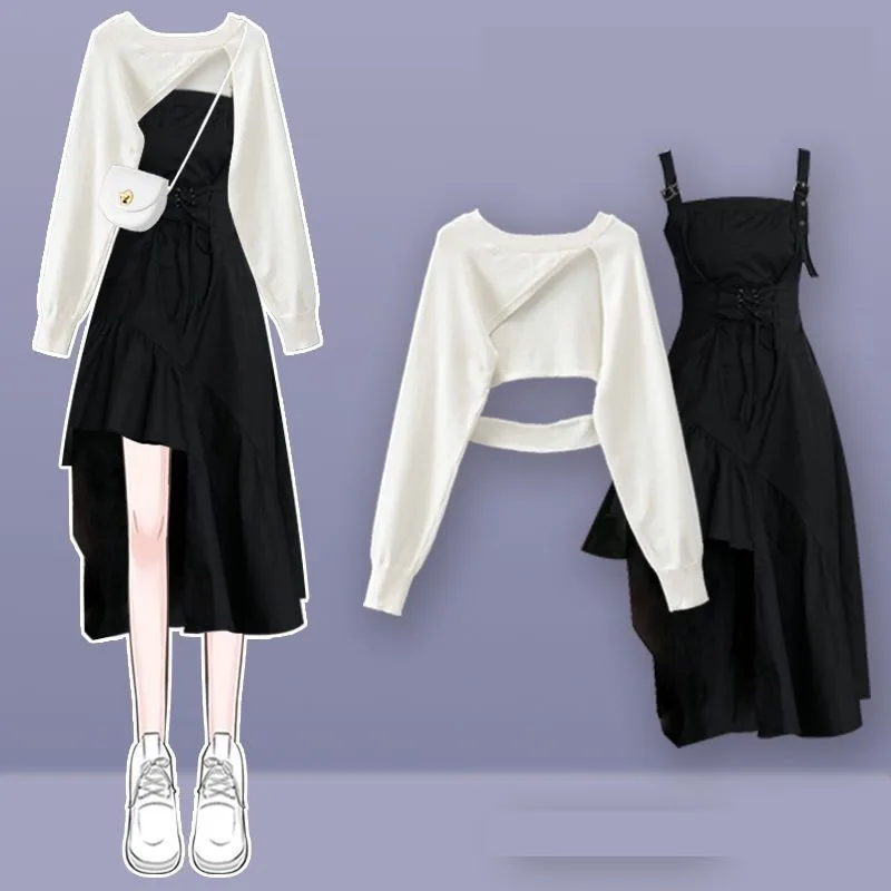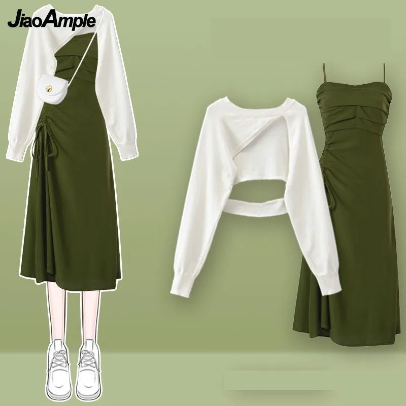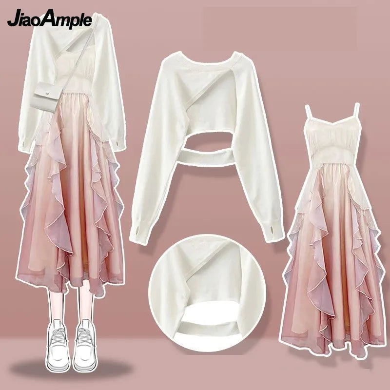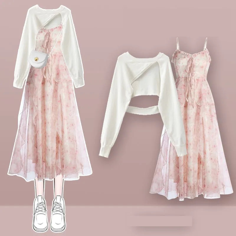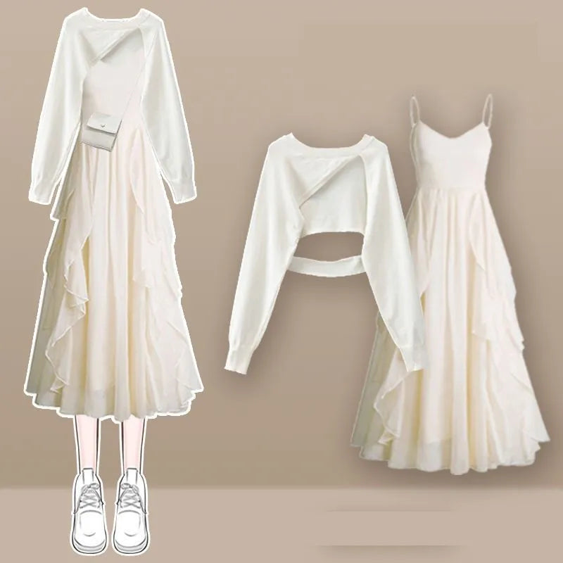Yipinpay Women's fashion cut-out sweater+suspender Skirt two-piece set Korean Elegant New in Matching Set 2024 Spring Summer Dress Suit