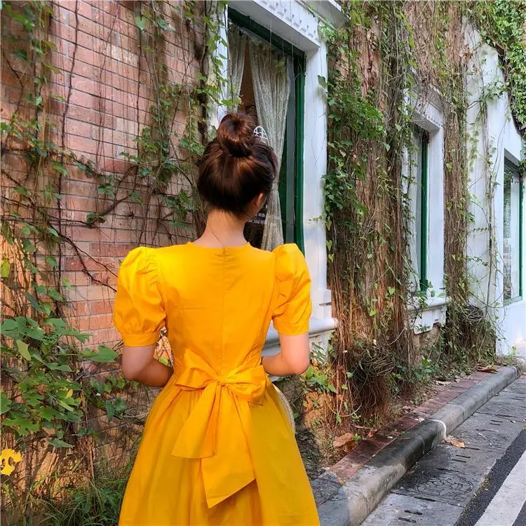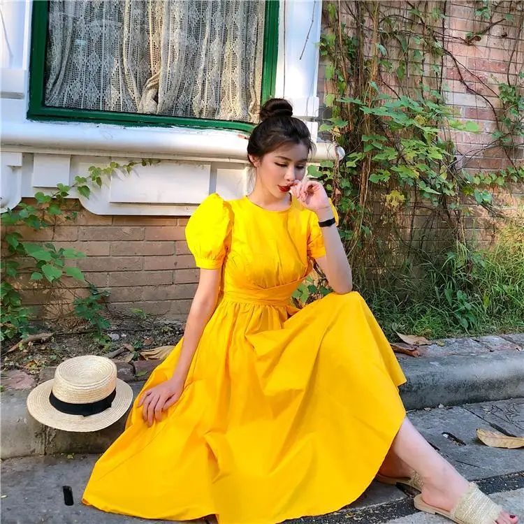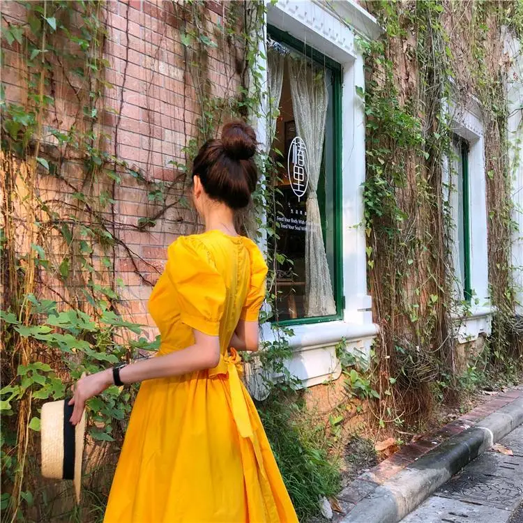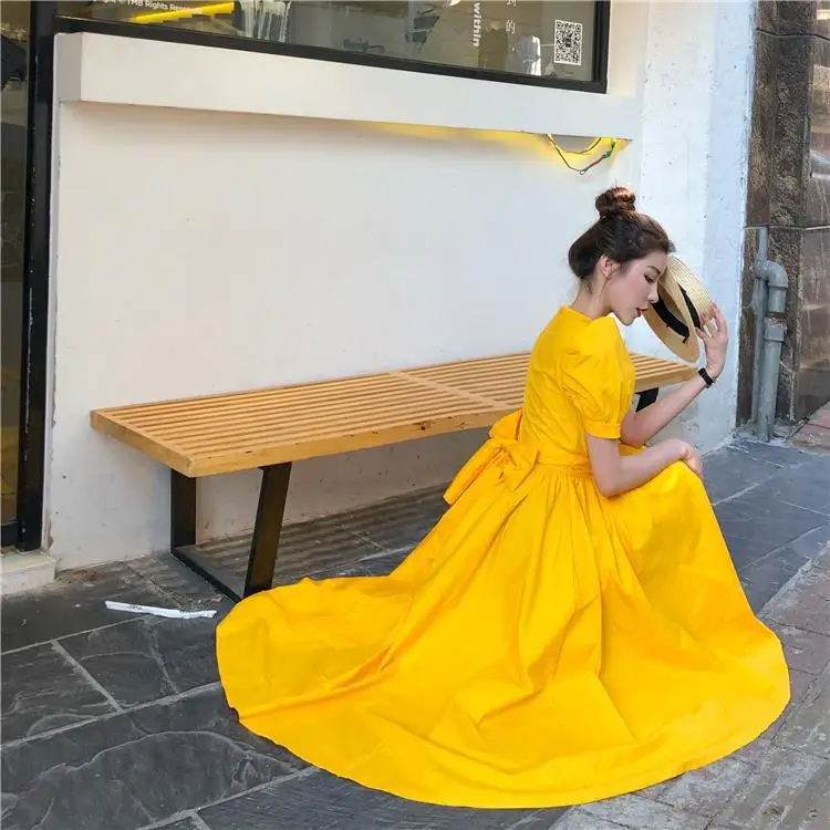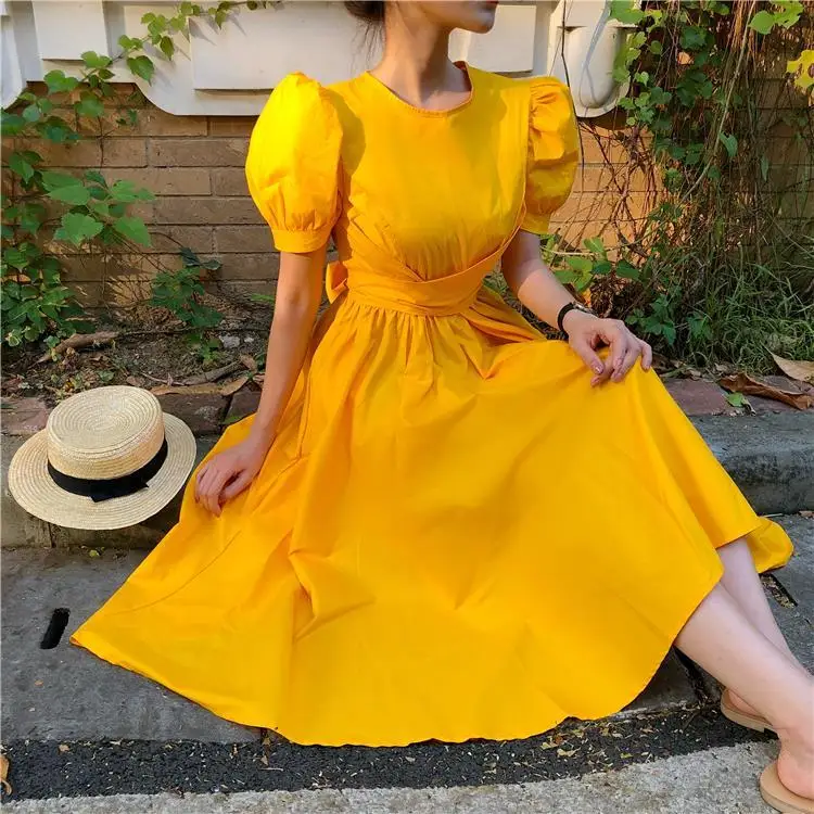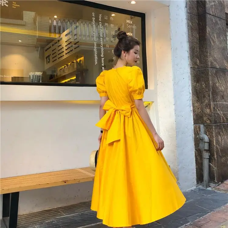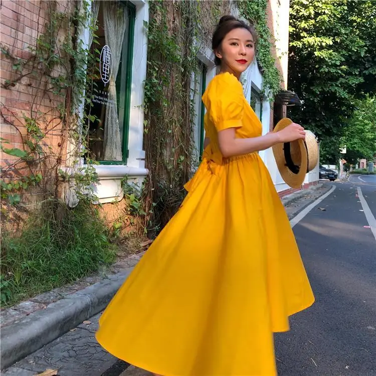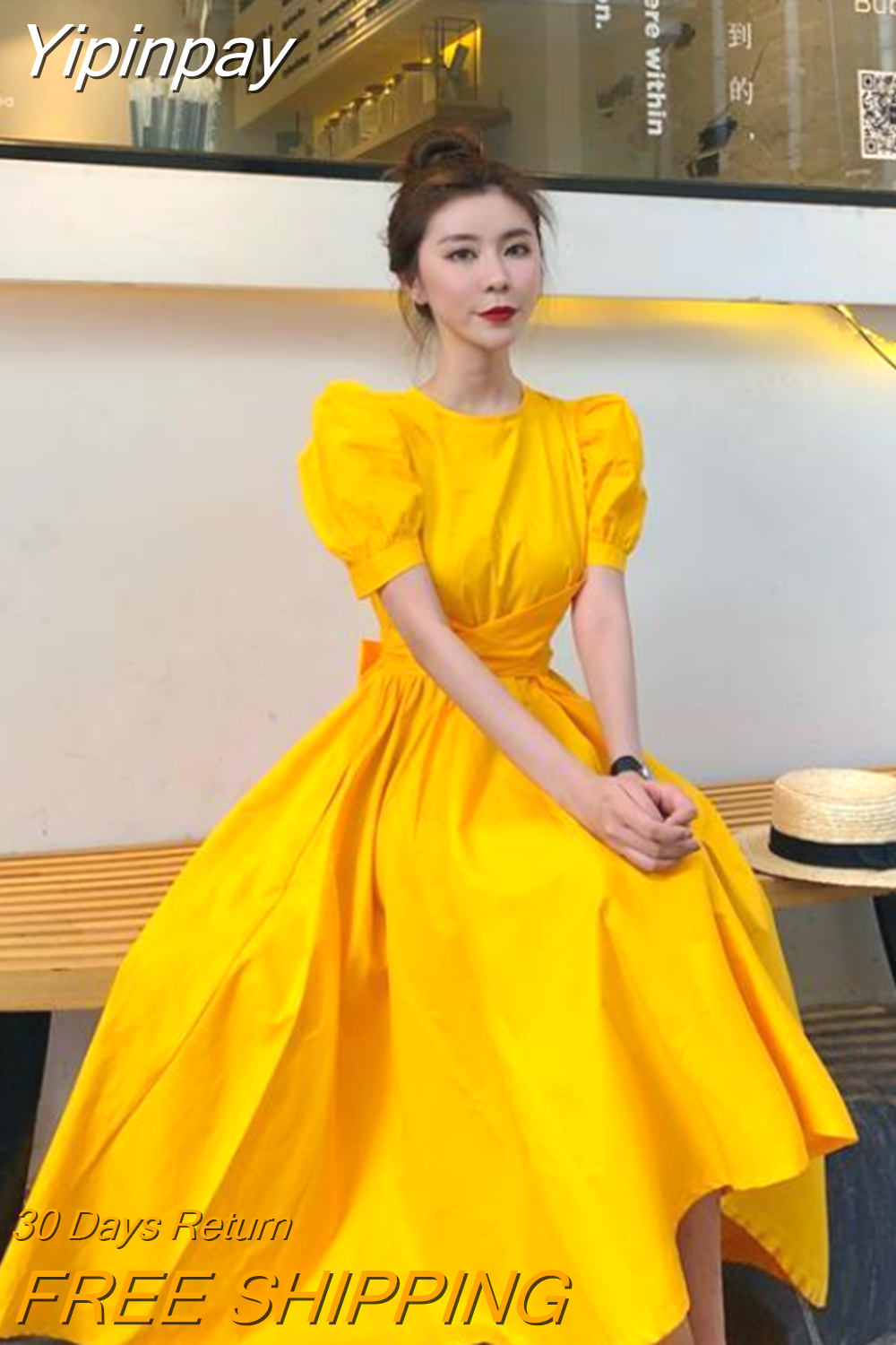 Yipinpay Yellow Dress Vestidos De Mujer Y2k Dress Femme Maxi Dresses for Women Casual Feminino Short Sleeve White Dress