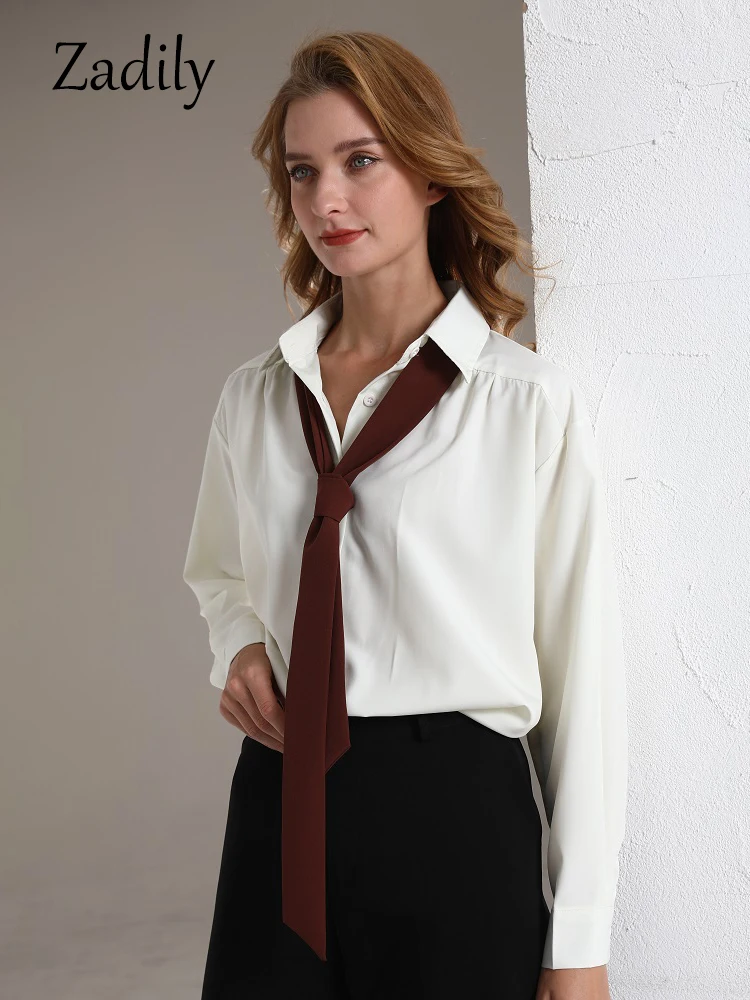 Yipinpay 2023 Spring Office Lady Long Sleeve Folds Women Basic Shirt Minimalist Tie Button Up Loose Woman Tunic Blouse Clothing