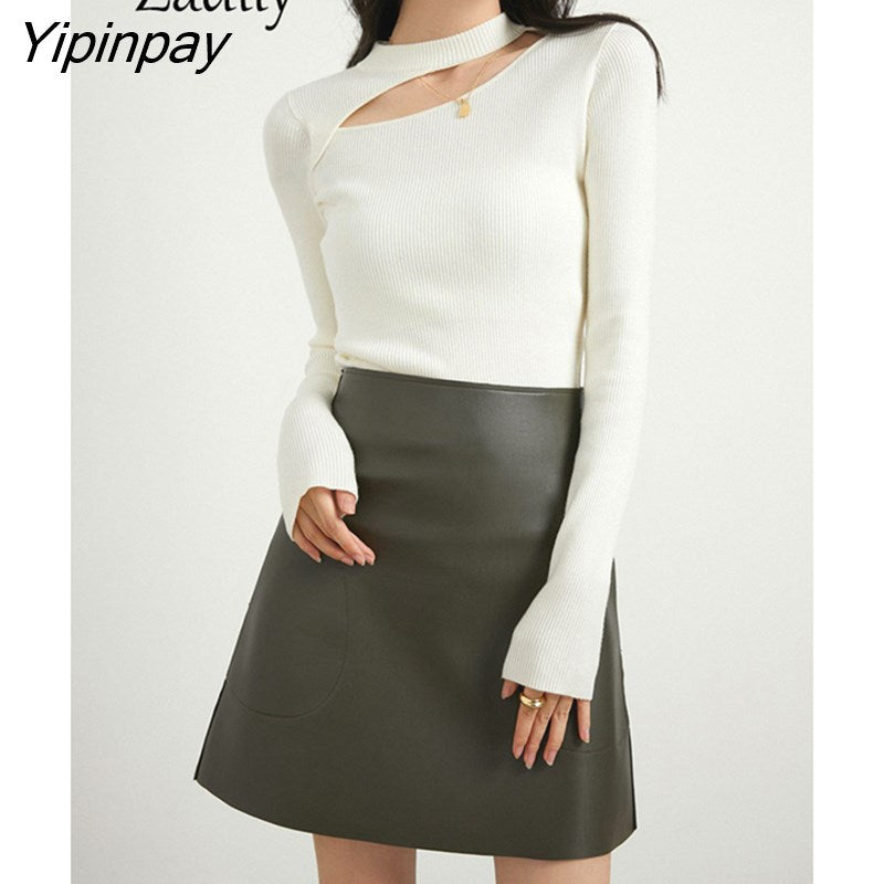 Yipinpay 2023 Winter New Bottoming Women Sweater Korea Style Slim Long Sleeve Hollow Out O Neck Strecth Ladies Knit Basic Pullover