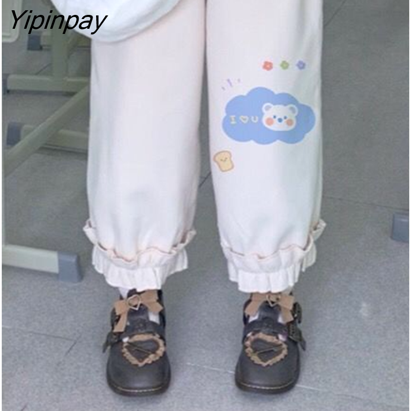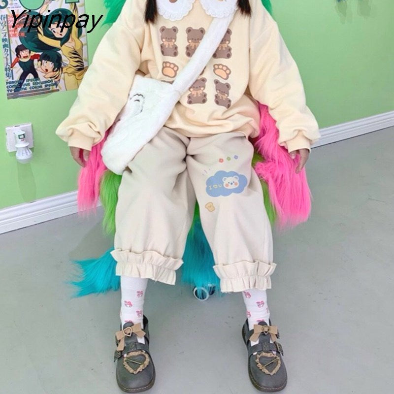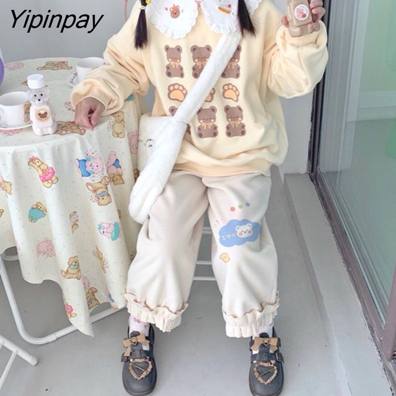 Yipinpay Autumn Set Women Loose Cute Peter Pan Collar Printed Sweater + Corduroy Pants Two-piece Suit