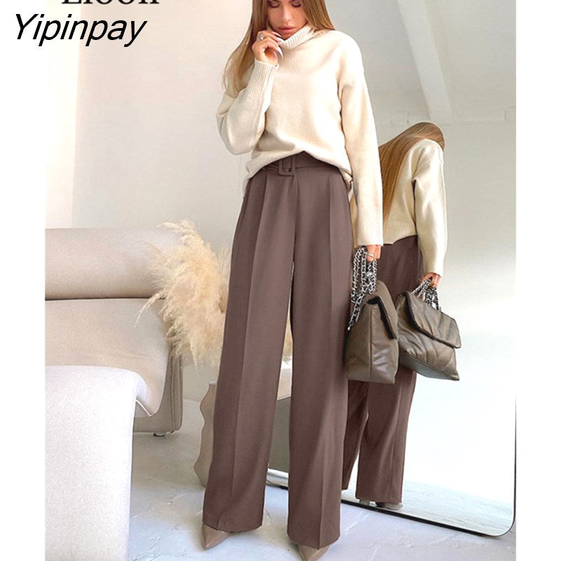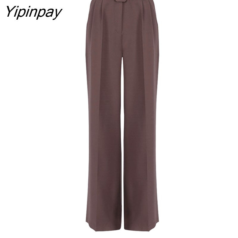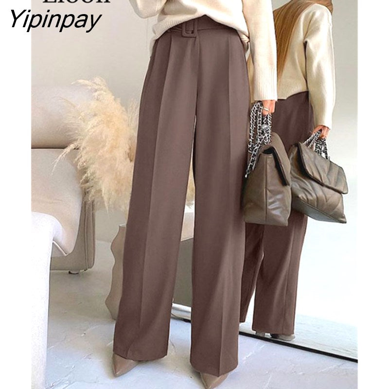 Yipinpay Baggy Suit Wide Leg Pants High Waist New Spring 2023 Summer Women Slacks With Pockets Belts Streetwear Casual Loose Pants