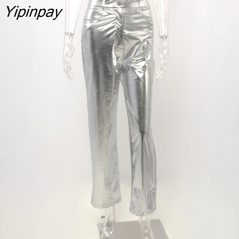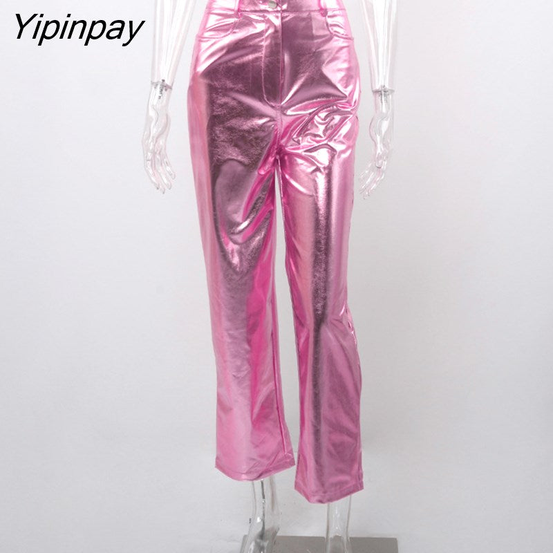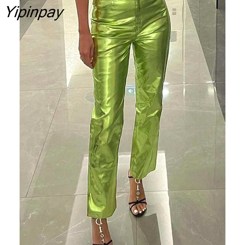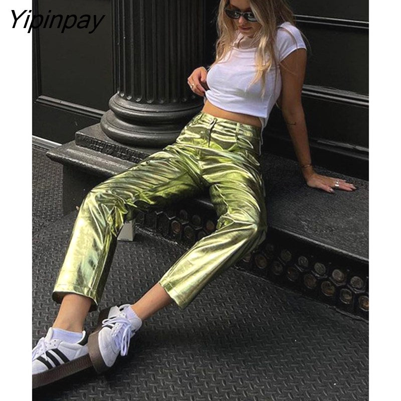 Yipinpay Bright Color Women Button Pants High Waist Straight Trousers Female 2023 Spring Sexy Casual Loose Lady Pant Streetwear