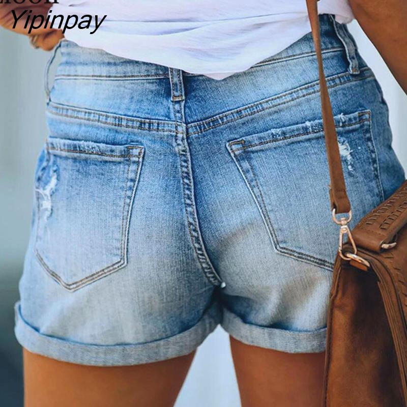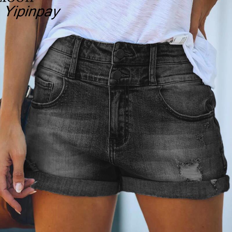Yipinpay Button Up Cuffed Stretch Sexy Hole Jean Shorts High Waist Skinny Streetwear 2023 Summer Woman Trendy Ripped Denim Shorts