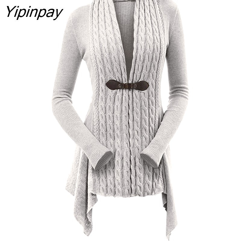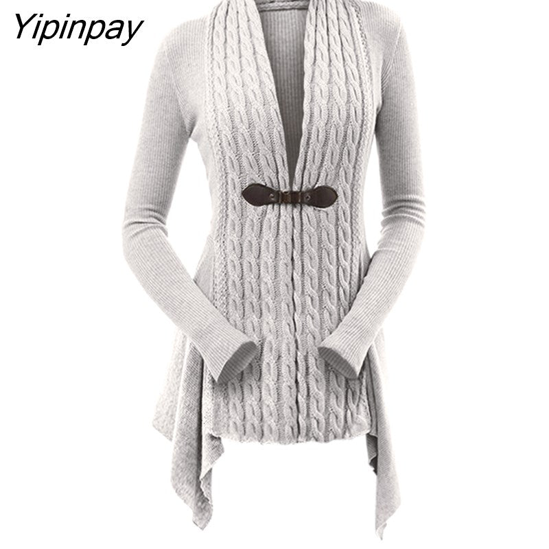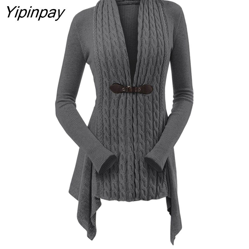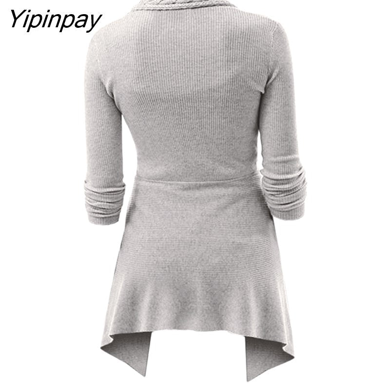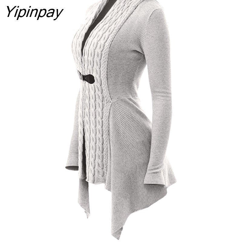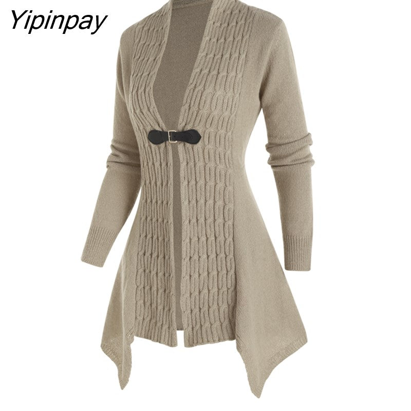 Yipinpay Knit Asymmetrical Long Cardigan Women Sweater Female Casual Solid V-Neck Long Sleeve Winter Cardigans