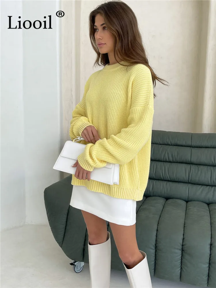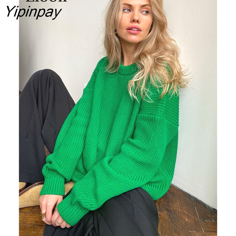 Yipinpay Knit Baggy Sweater Women Pullover Female Jumper Long Sleeve Loose Knitted Tops O Neck Streetwear Autumn Winter Sweaters