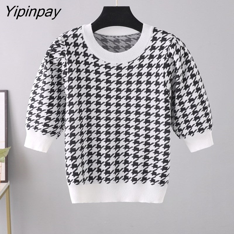 Yipinpay Print Knit T Shirts Ribbed Crop Top Women Pullovers 2023 Summer Basic Tees Streetwear Short Tshirt Sexy Bodycon Tops