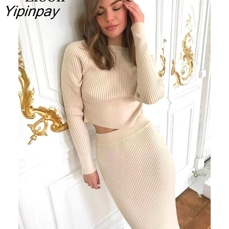 Yipinpay Sexy Knit Two Piece Sweater Set Women High Waist Long Skirt And Tops Autumn Winter Knitted Sweaters Outfits Skirts Sets