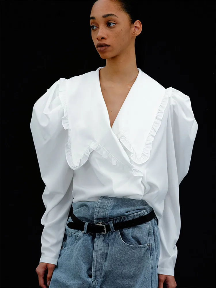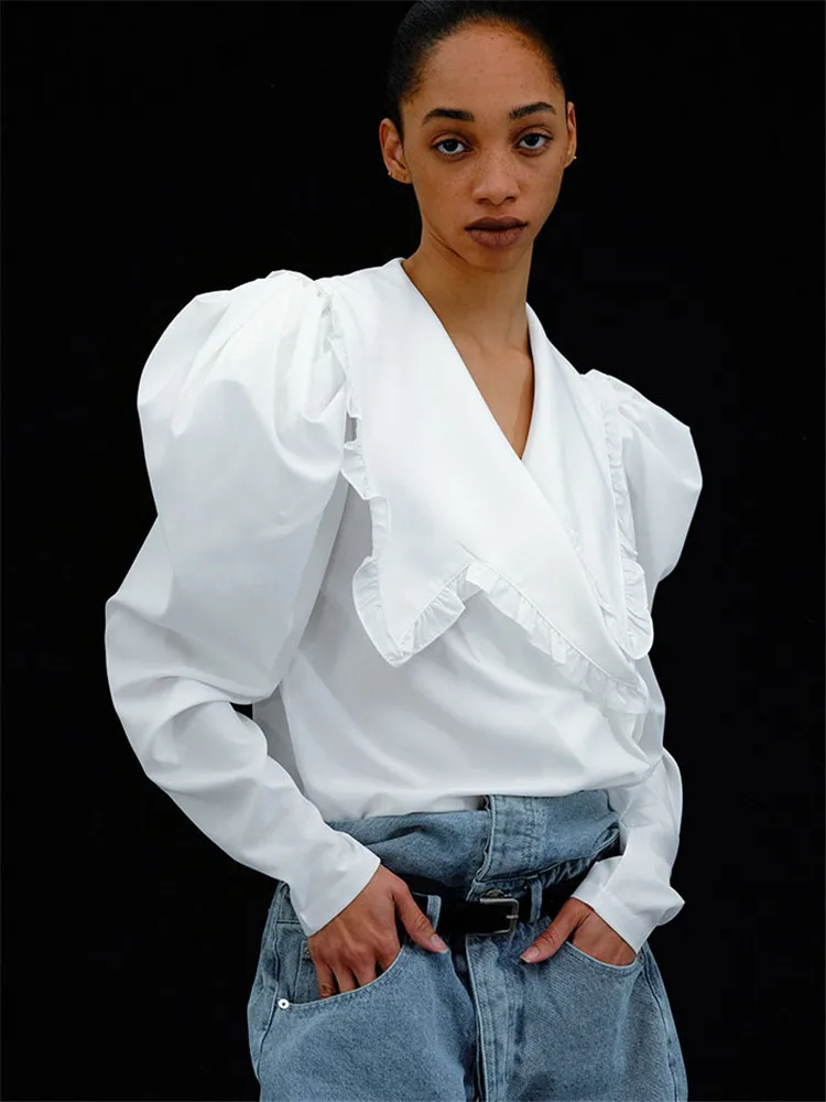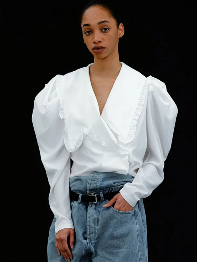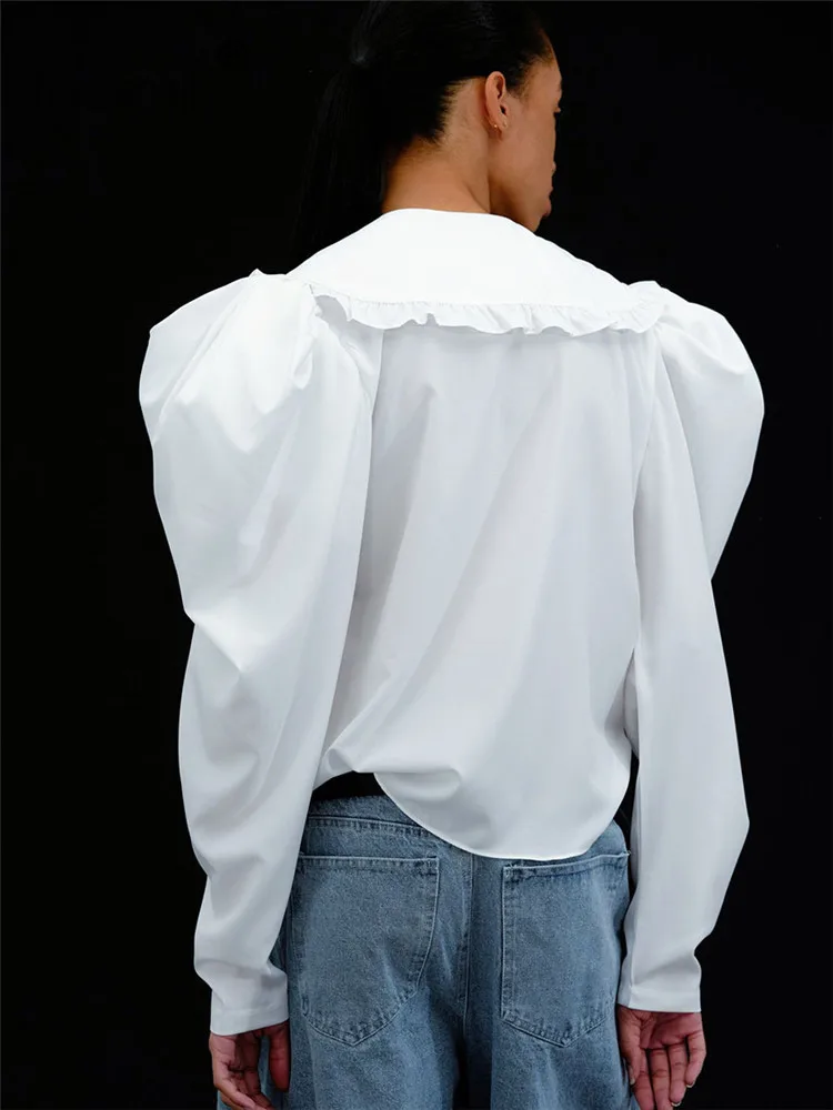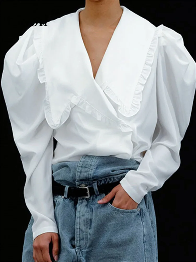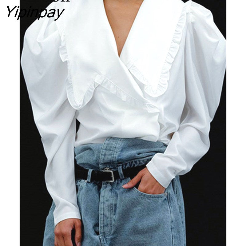 Yipinpay Sexy Puff Sleeve Shirt White Top Spring Autumn 2023 Turndown Collar Women Loose Blouses And Tops Streetwear Baggy Shirts