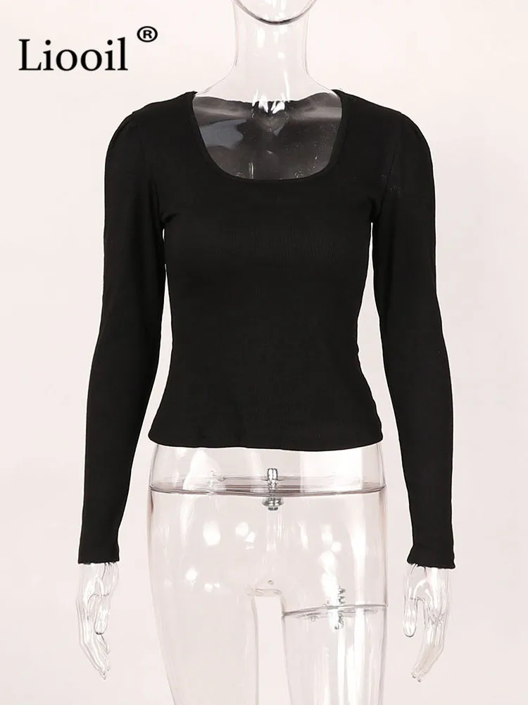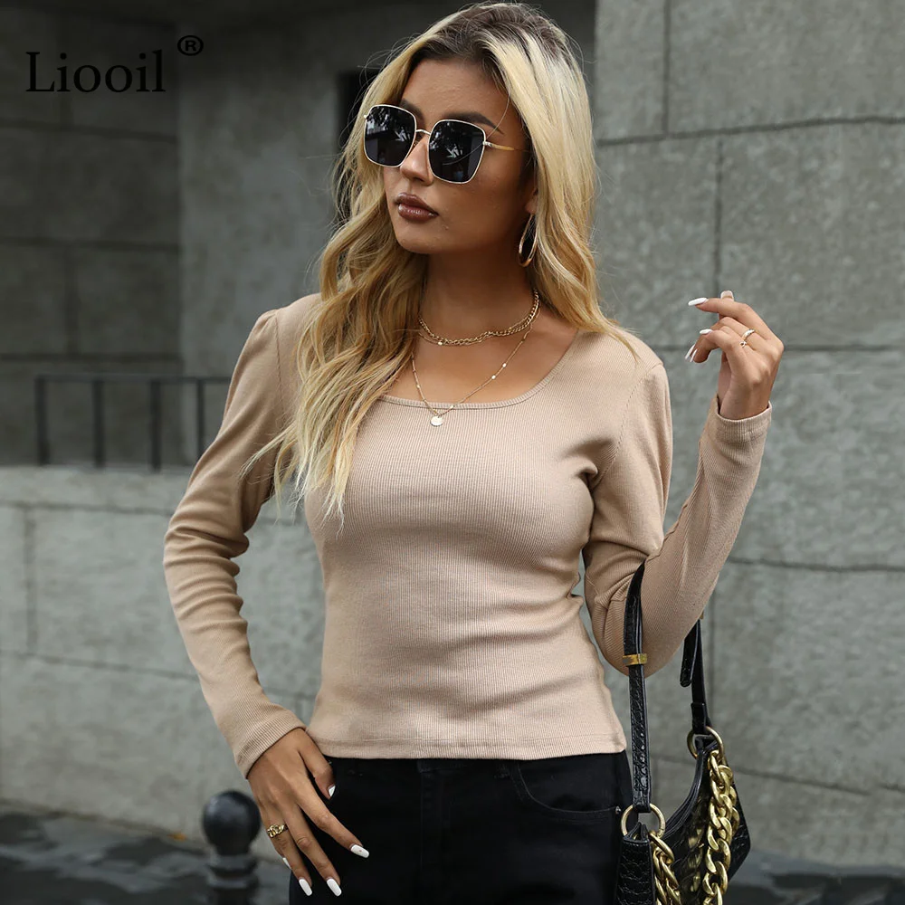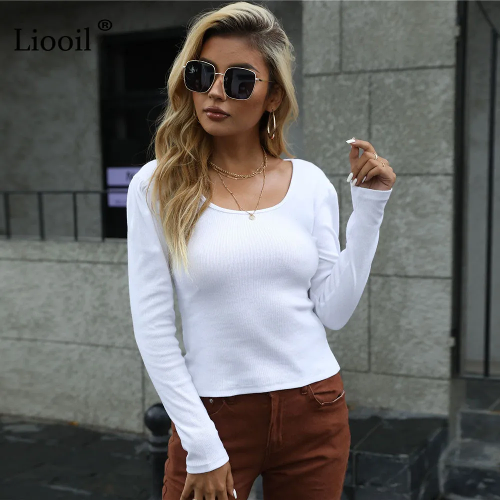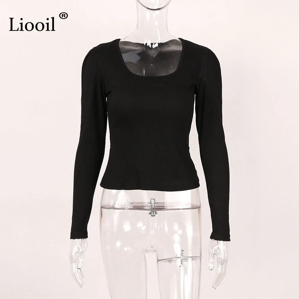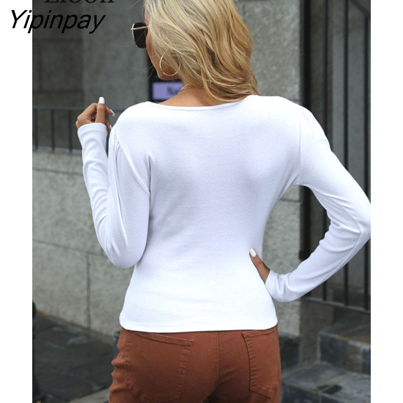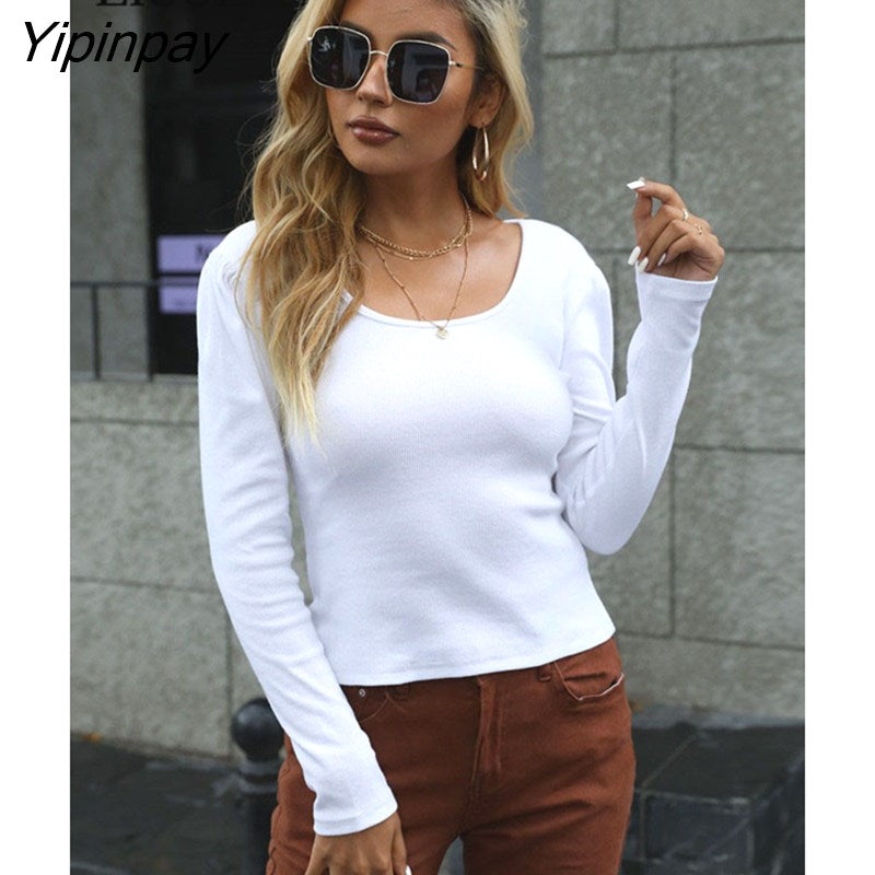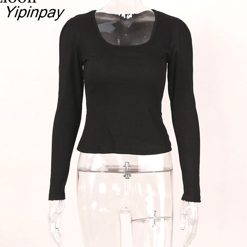 Yipinpay Sexy Short T Shirt Knit Tight Tops For Women Spring 2023 Long Sleeve O Neck Streetwear Bodycon T Shirts Knitted Crop Tops