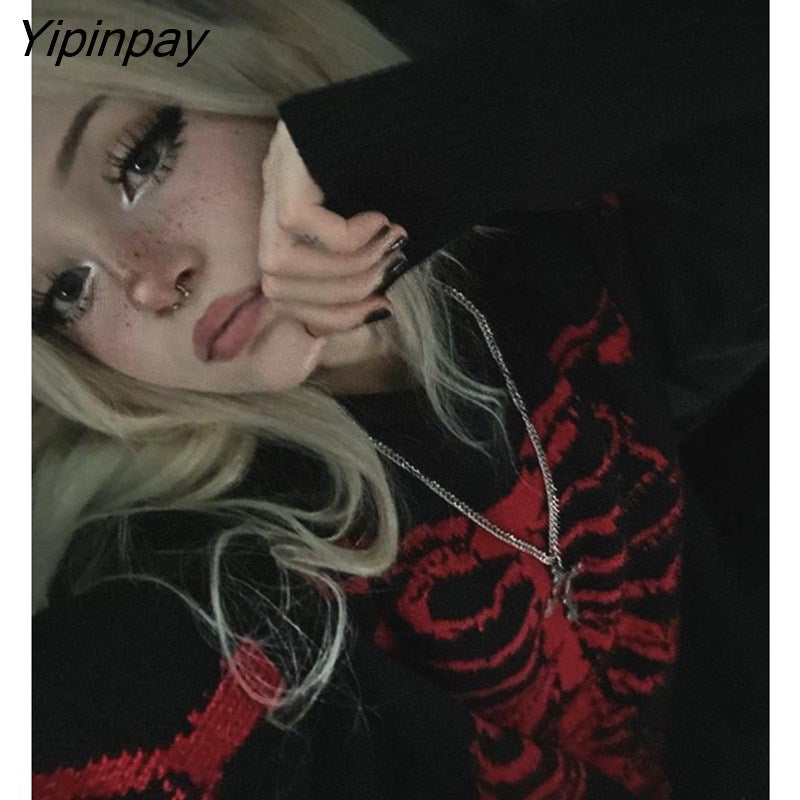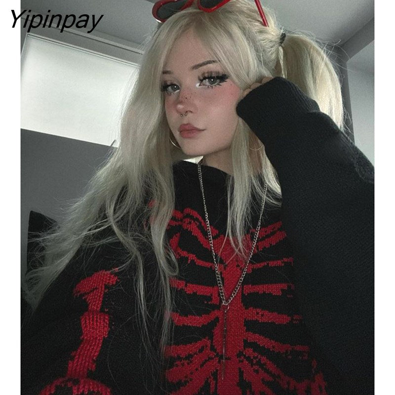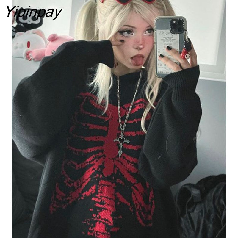 Yipinpay Skeleton Graphic Sweater Women's Oversized Hip Hop Streetwear Autumn Oversize Pullover Sweater for Men Fashion Sweaters