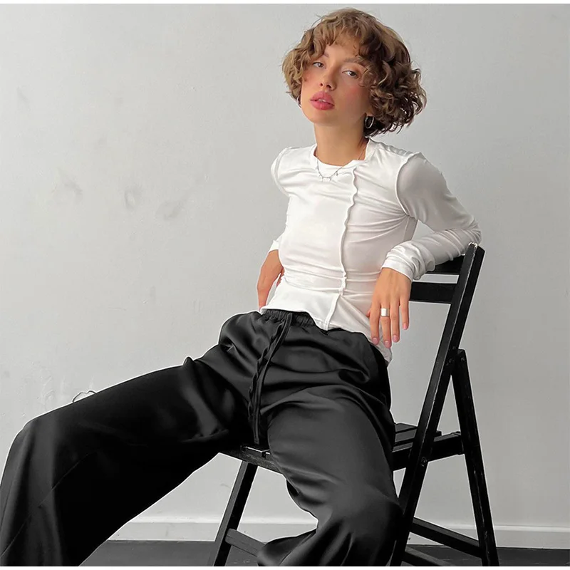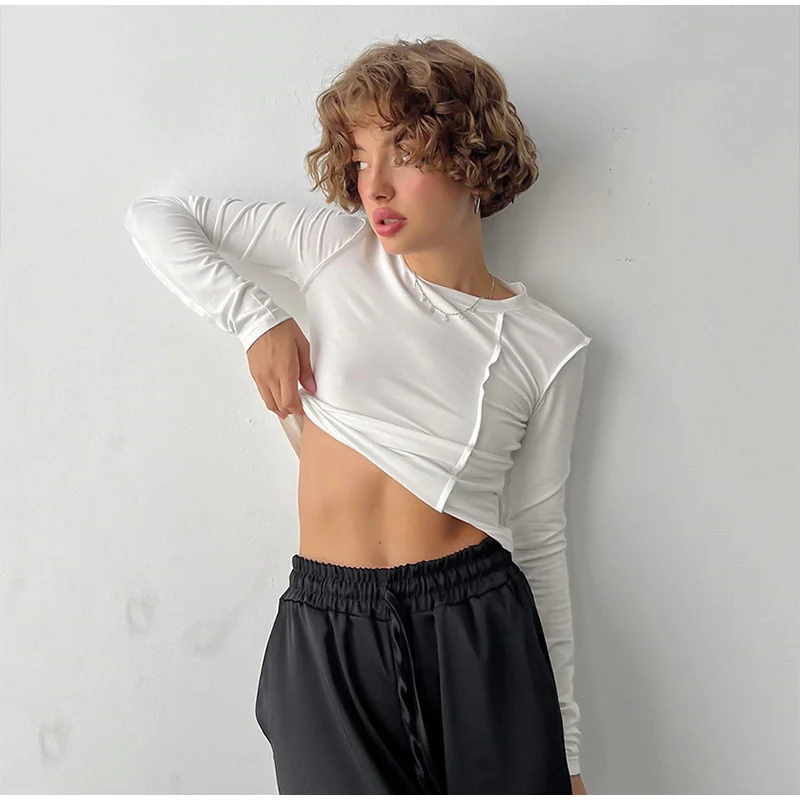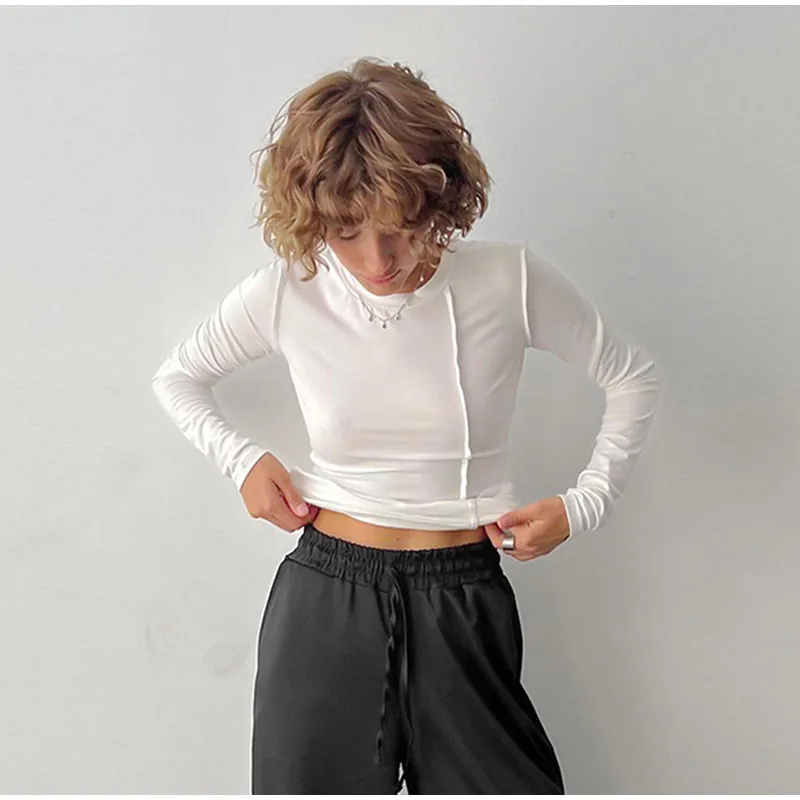 Yipinpay Solid Stripe Slim Basic Shirt Casual Women O Neck Long Sleeve Bottom Tees Spring Female Chic Street Skinny Blouse 2023
