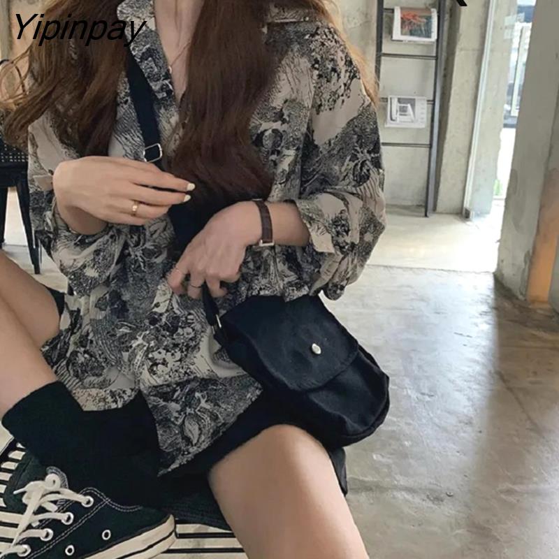 Yipinpay Spring Street Style Long Sleeve Loose Women Blouse Chic Oversize Button Floral Print Ladies Shirt Hip Hop Female Clothing
