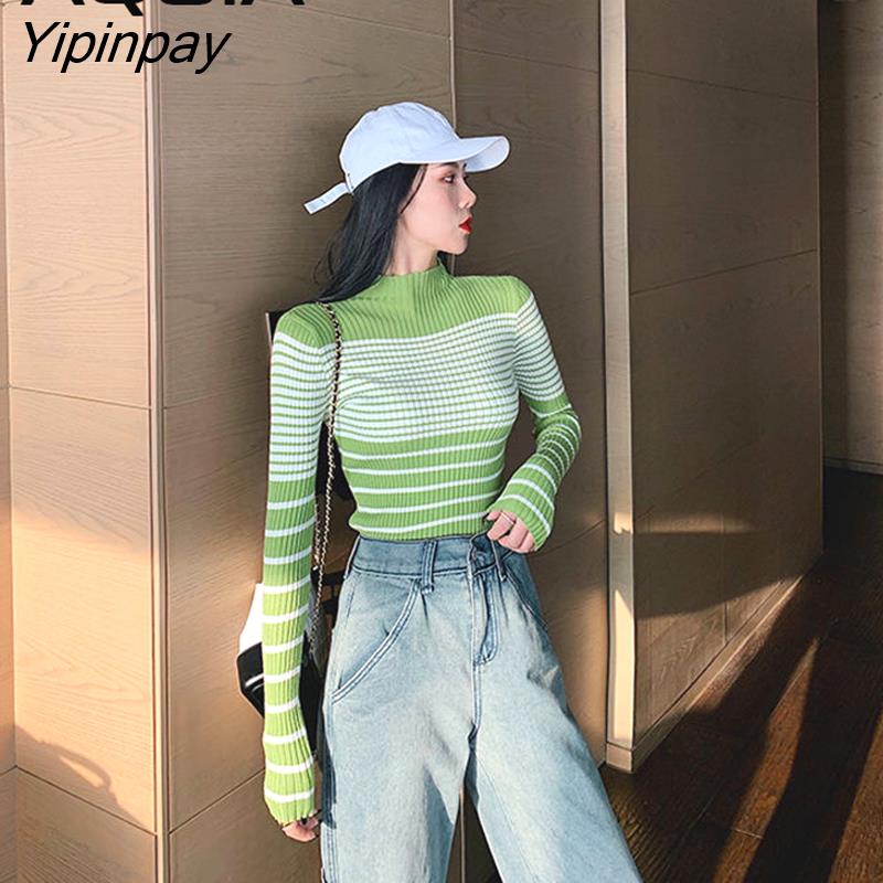 Yipinpay style Striped Slim Elasticity Women's Sweaters Turtleneck Long Sleeve Sweater Women 2023 Winter Autumn Female Pullovers