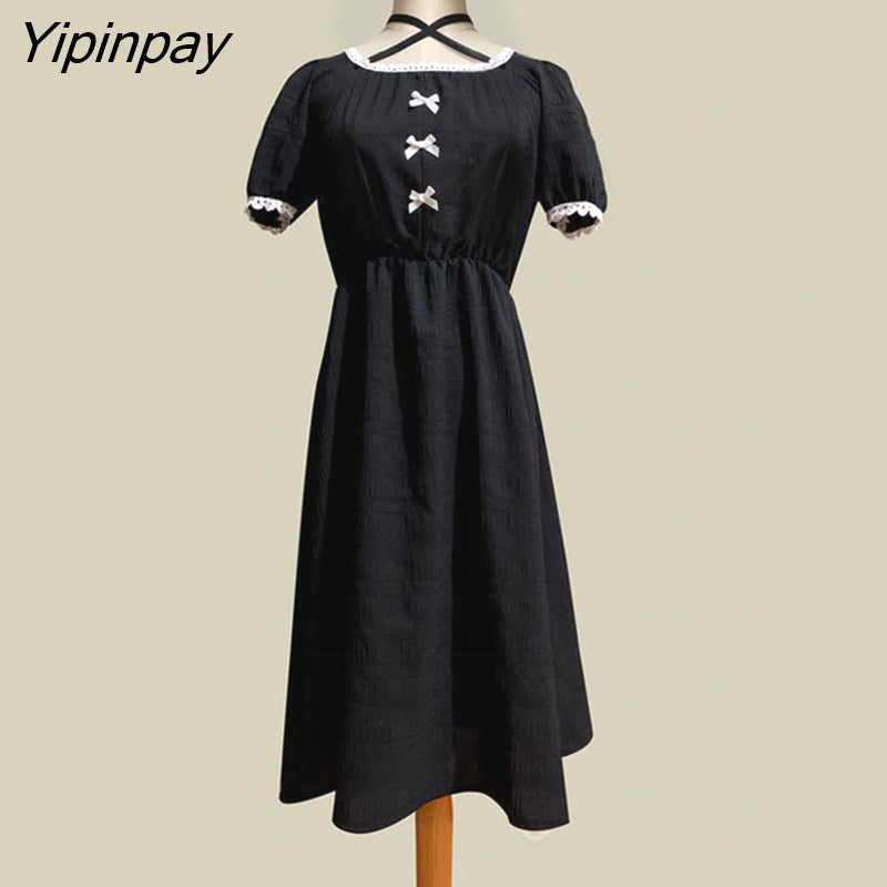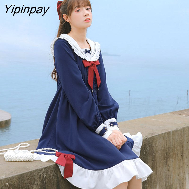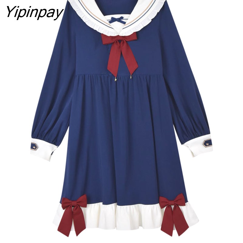 Yipinpay Sweet Autumn Women Pleated Dress JK Student Uniform Preppy Style Retro Female Dresses 2023 New High Waist