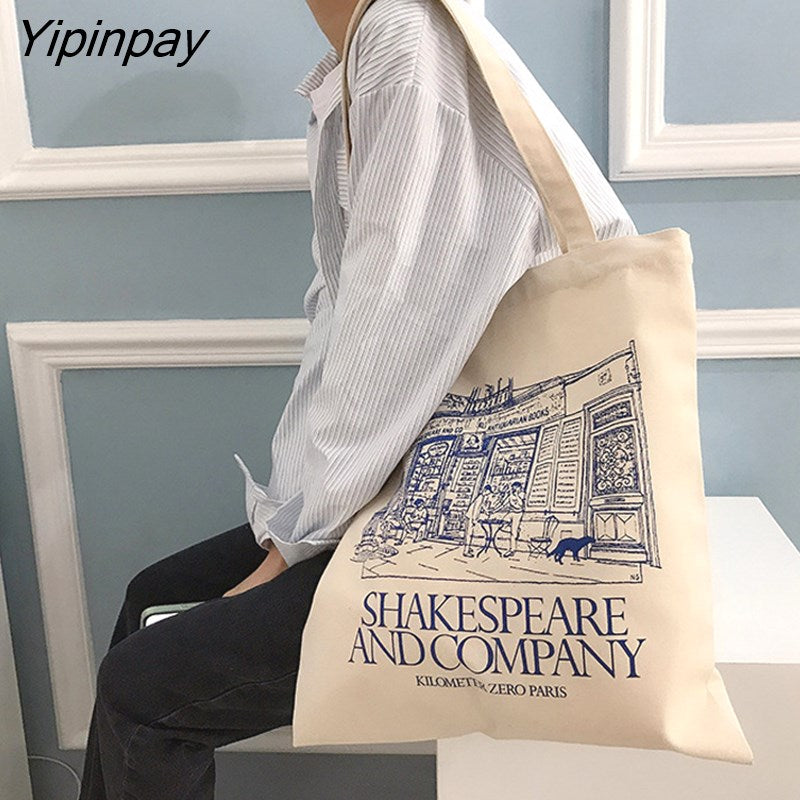 Yipinpay Women Canvas Shoulder Bag Shakespeare Print Ladies Shopping Bags Cloth Harajuku Fabric Grocery Handbags Tote Books Bag For Girls