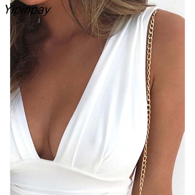 Yipinpay Women Summer Fashion Sexy Solid Plunge Ruched Casual Tank Top Crop Slim Sleeveless Skinny