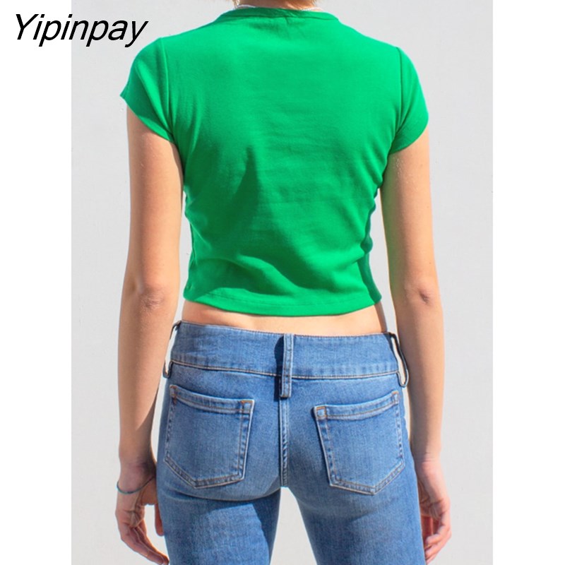 Yipinpay Women T-shirt Goth 90s Short Sleeve Top Tee Female Kawaii y2k fairy grunge crop top Harajuku E-girl Graphics Print Green