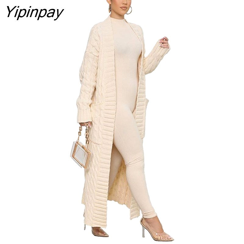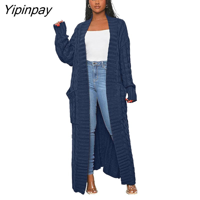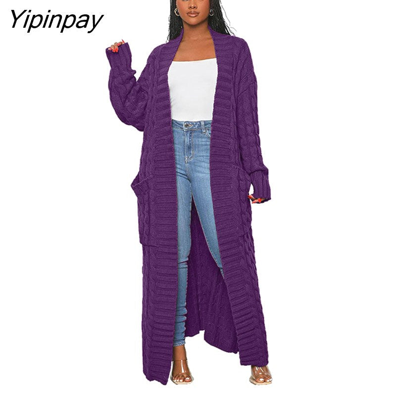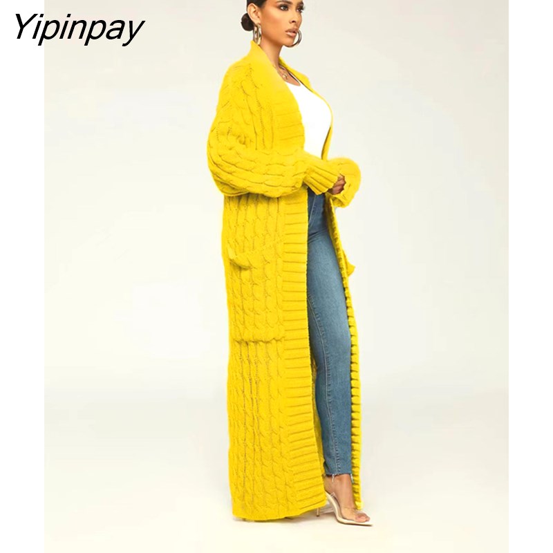 Yipinpay Women's Oversize Cashmere Cardigans Female Solid Dropped Shoulder Sleeves Knitted Sweaters Winter Loose High Street Cardigans