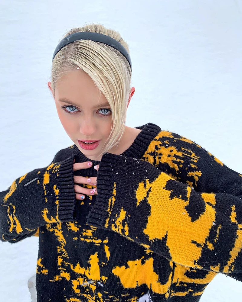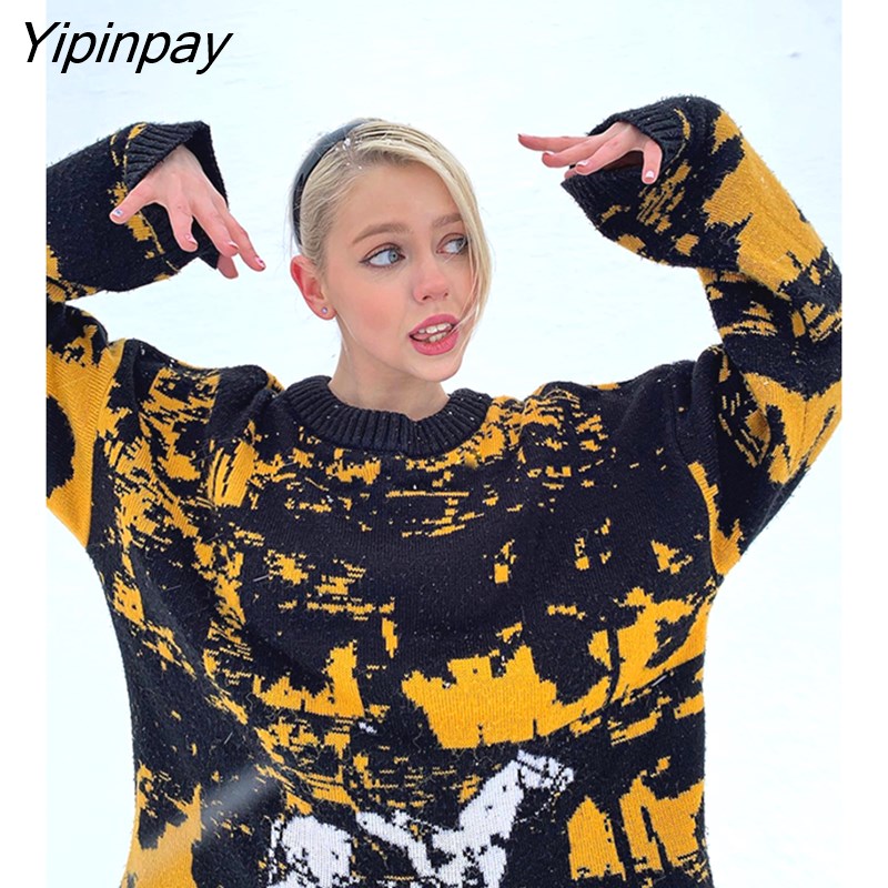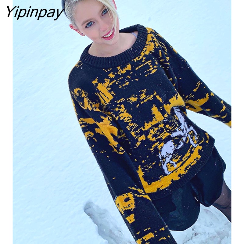 Yipinpay Women's Pullovers Sweaters skull star print Women's Knitted Streetwear Oversized Harajuku O Neck Knitwear Men Clothing