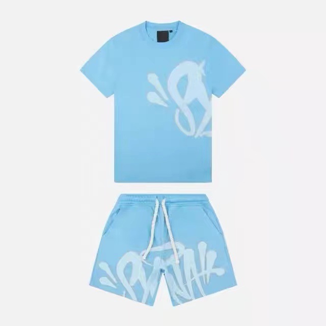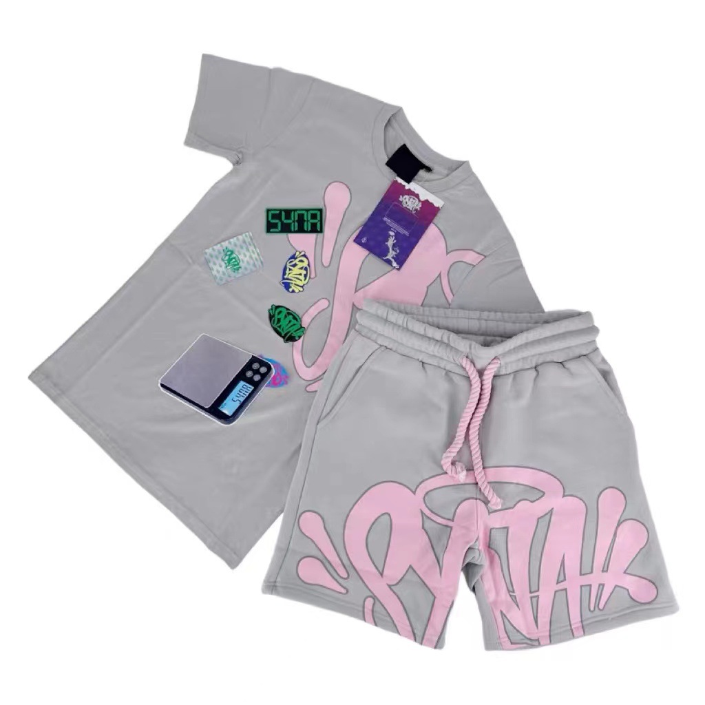 Yipinpay Aesthetics Male Gothic 2-Piece Hip-Hop Alphabet Print 0-Collar T-Shirt + Rope Wide Legs And Short