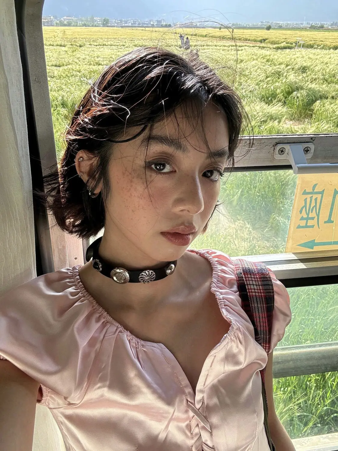 Yipinpay American Retro Pink Pleated Hollow Lace up Design Blouses Female Short Sleeve Shirt Women Top Spicy Girl Slim Short Top