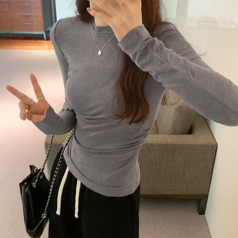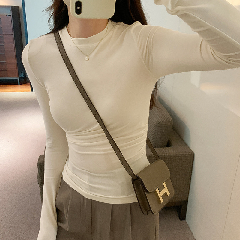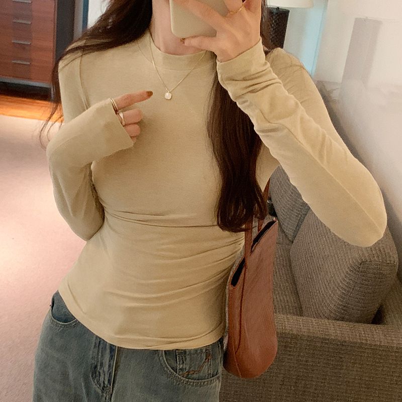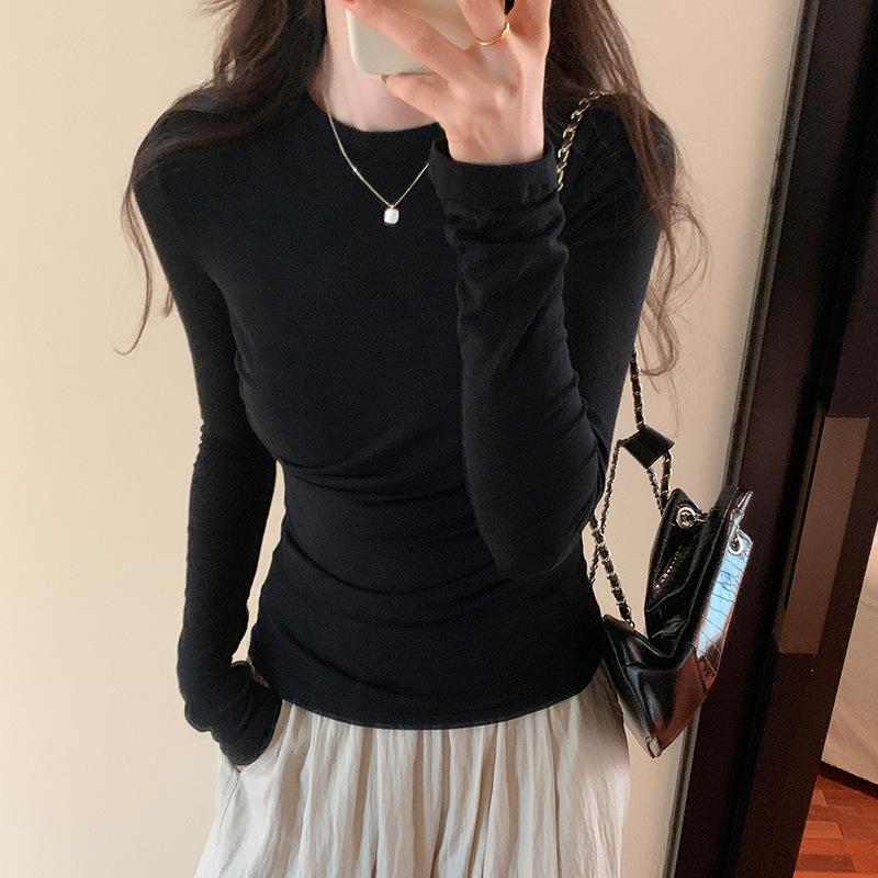 Yipinpay Color Design Feel Small Waist Long-Sleeved T-Shirt Women's Autumn New Round-Neck Blouse Slim And Skinny Bottomed Shirt